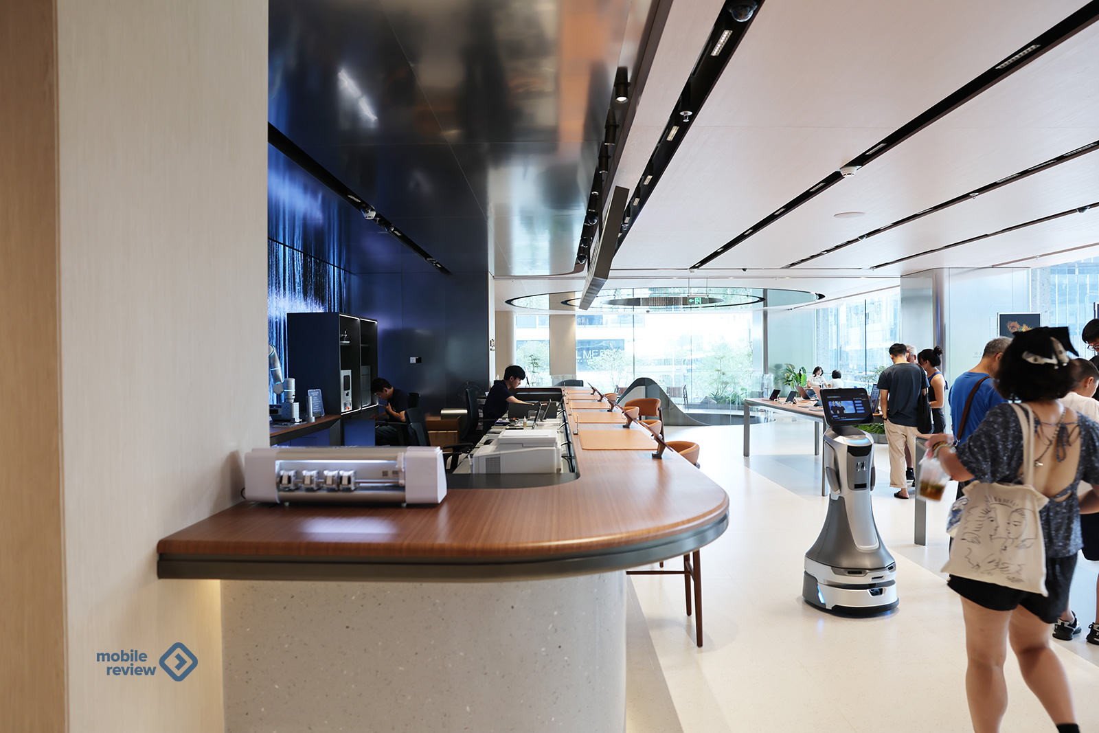 Тут же стоят столики, где можно расположиться, есть розетки, лежат платежные терминалы, то есть в теории вас могут здесь же обслужить.