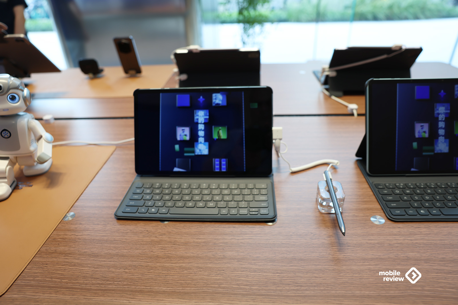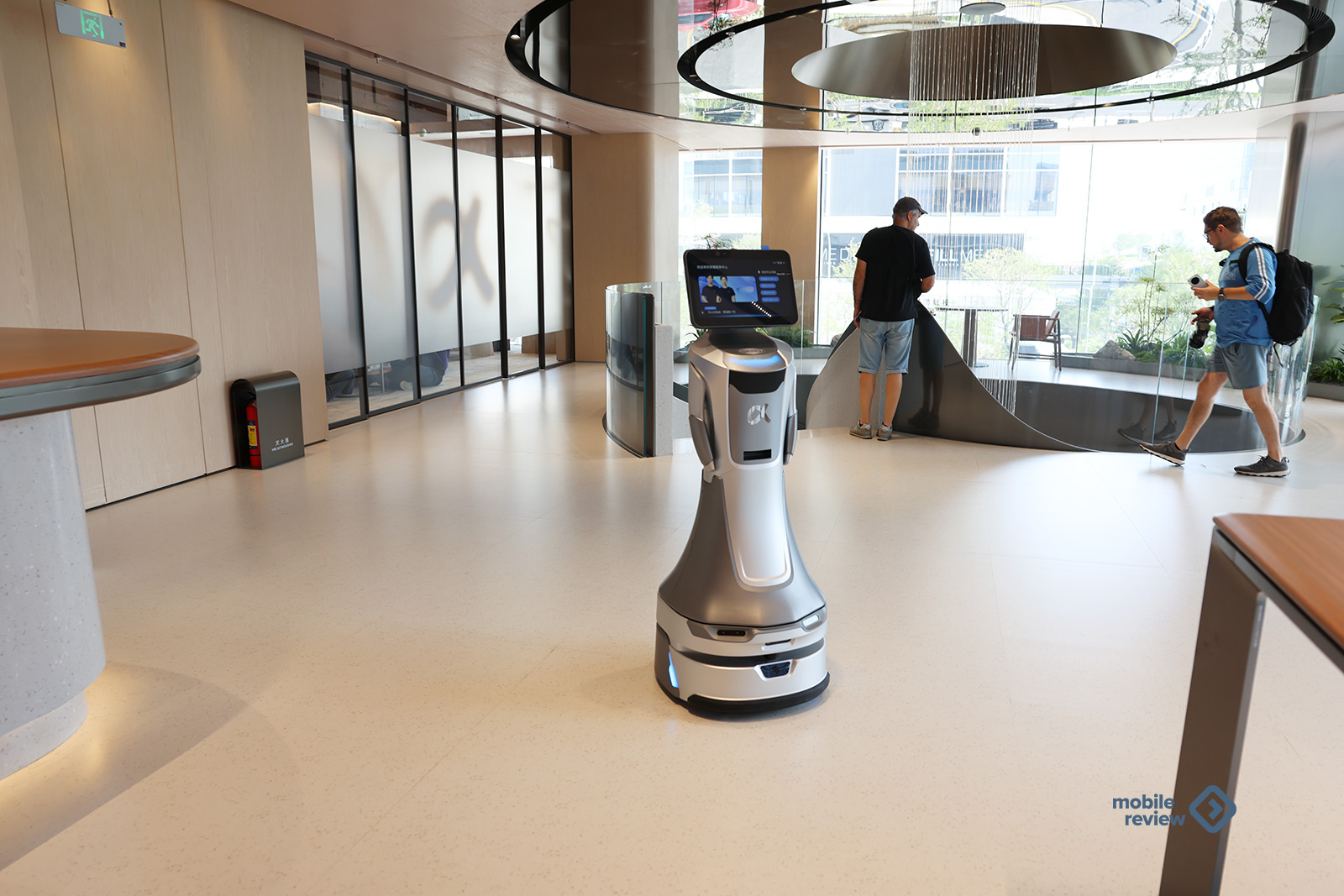 И только дальше идут столы с товарами компании, можно посмотреть смартфоны, планшеты, компьютеры. Второй этаж выглядит достаточно обыденно, если не обращать внимания на входную группу.
