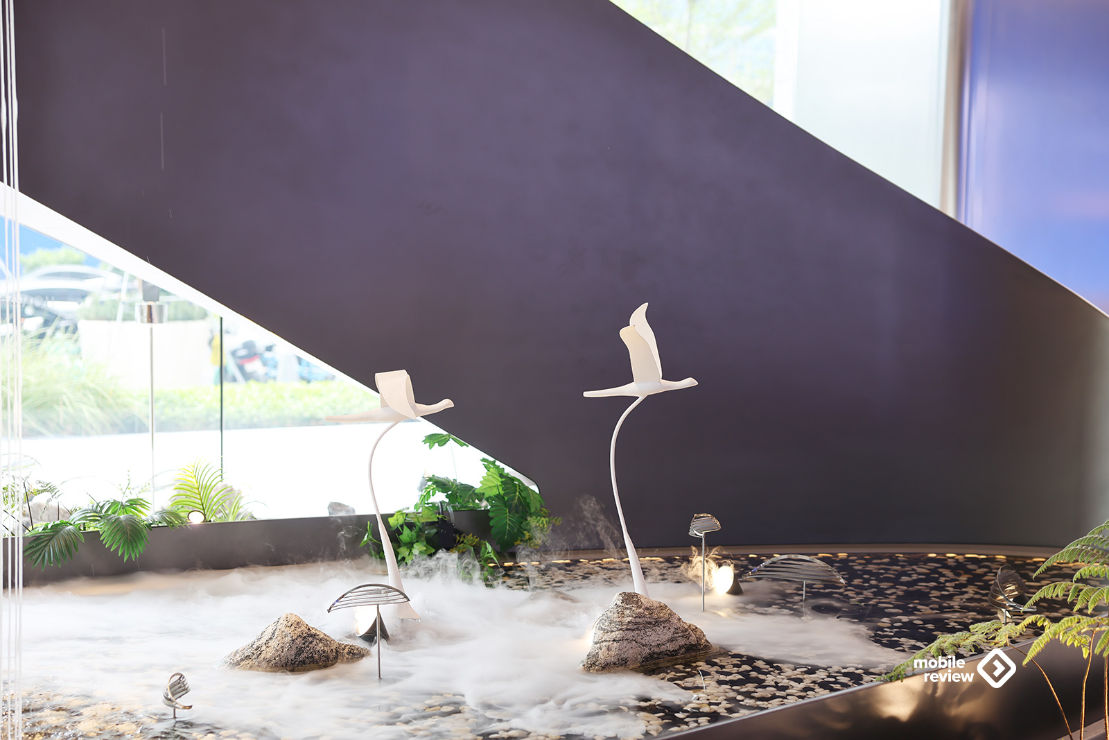 Внизу же сделали заводь с металлическими птицами, пускают искусственный водяной дым. Не то чтобы красиво и хорошо, как-то неуместно, словно этот кусок притащили сюда из другого проекта.