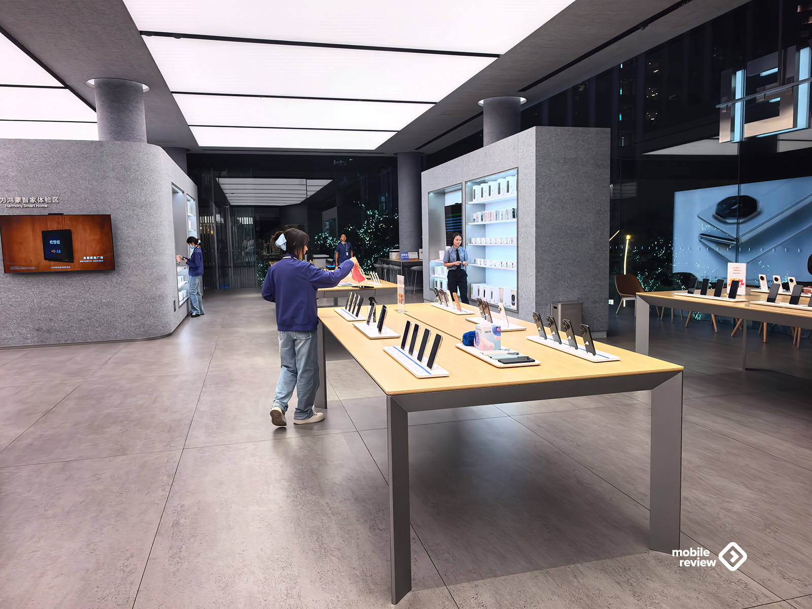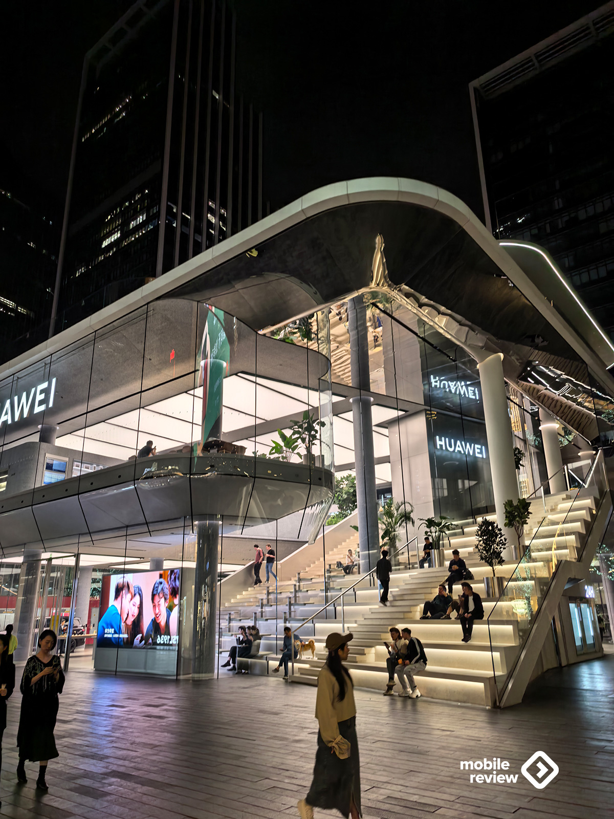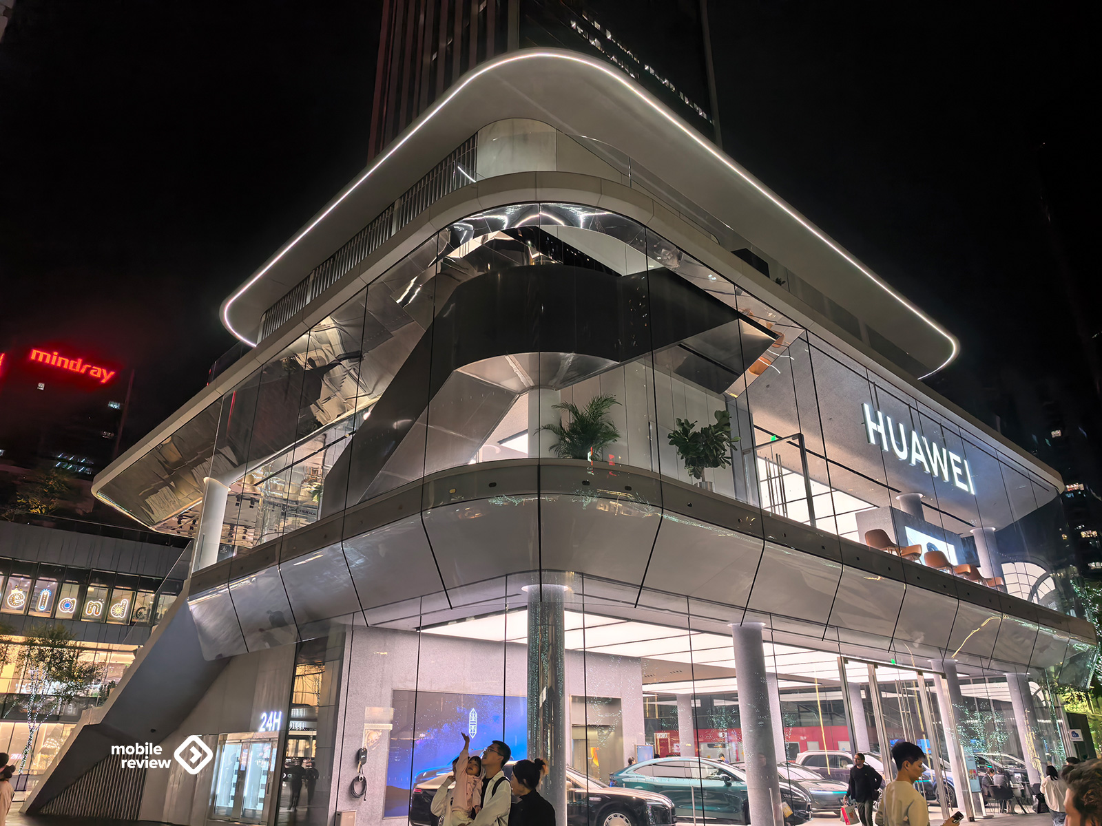 В Шэньчжэне в торговом комплексе MixC (более старый комплекс, он не у залива) с 2019 года стоит трехэтажный космический магазин Huawei. И вот он как раз служит местом для обкатки технологий, уже после него открыли глобальный флагманский магазин в Шанхае. Посмотрите, как выглядит этот магазин со своим лицом.