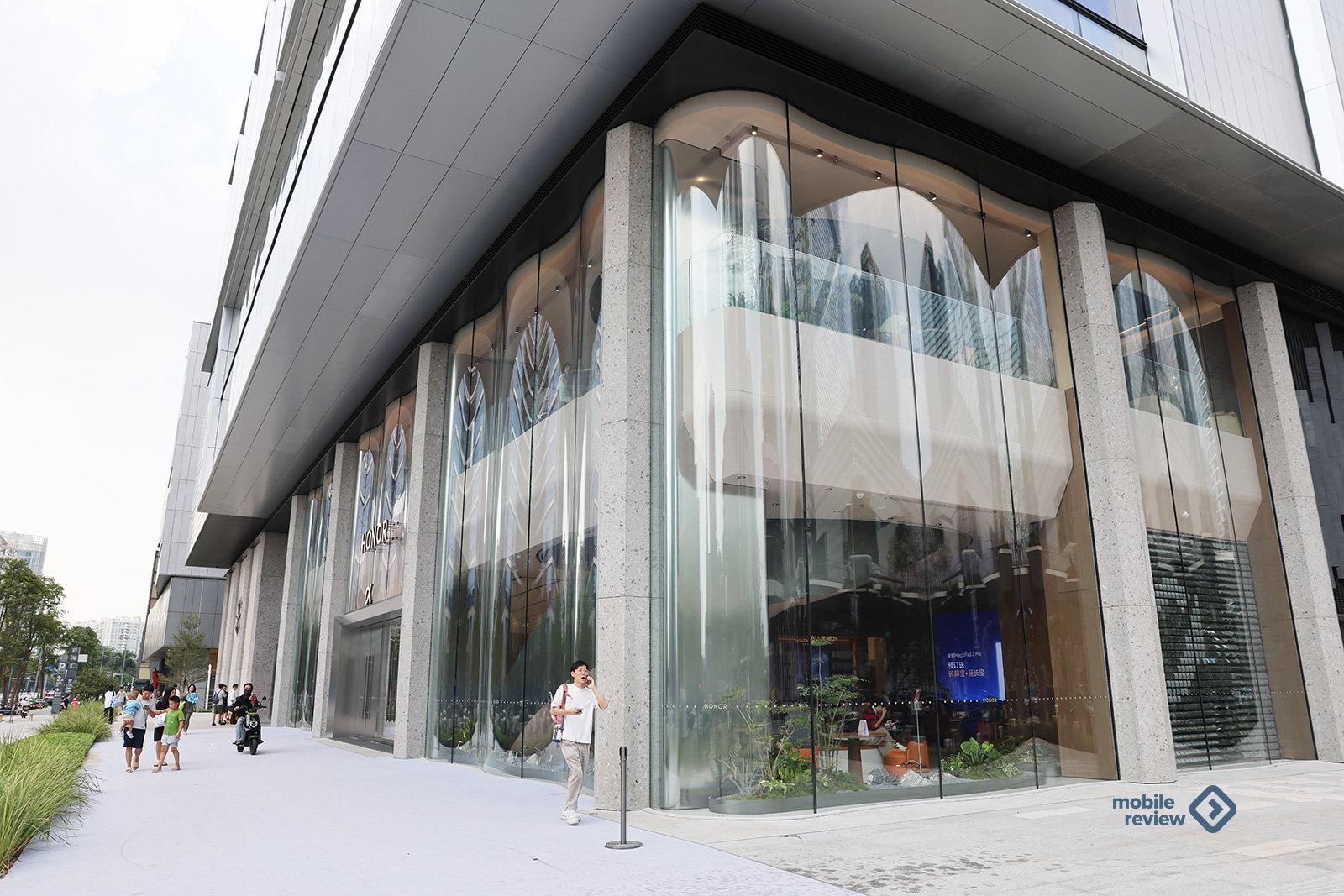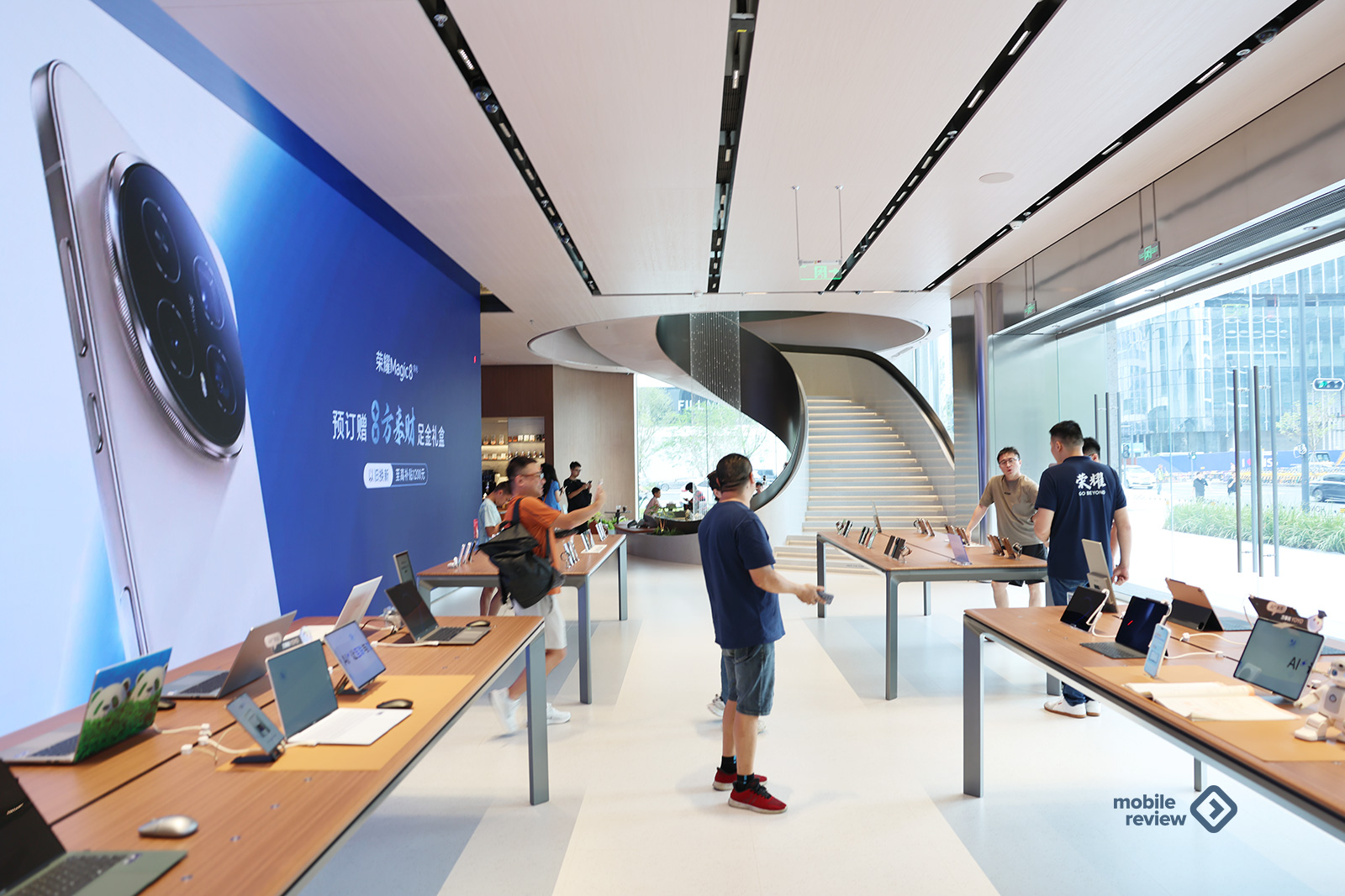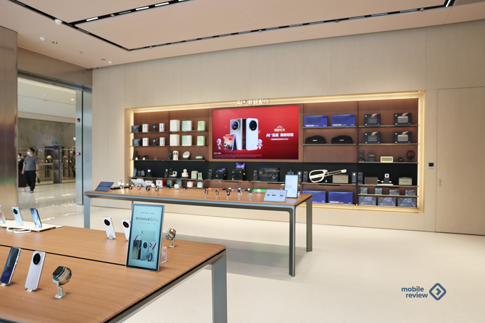 В Шэньчжэне в торговом комплексе MixC (более старый комплекс, он не у залива) с 2019 года стоит трехэтажный космический магазин Huawei. И вот он как раз служит местом для обкатки технологий, уже после него открыли глобальный флагманский магазин в Шанхае. Посмотрите, как выглядит этот магазин со своим лицом.