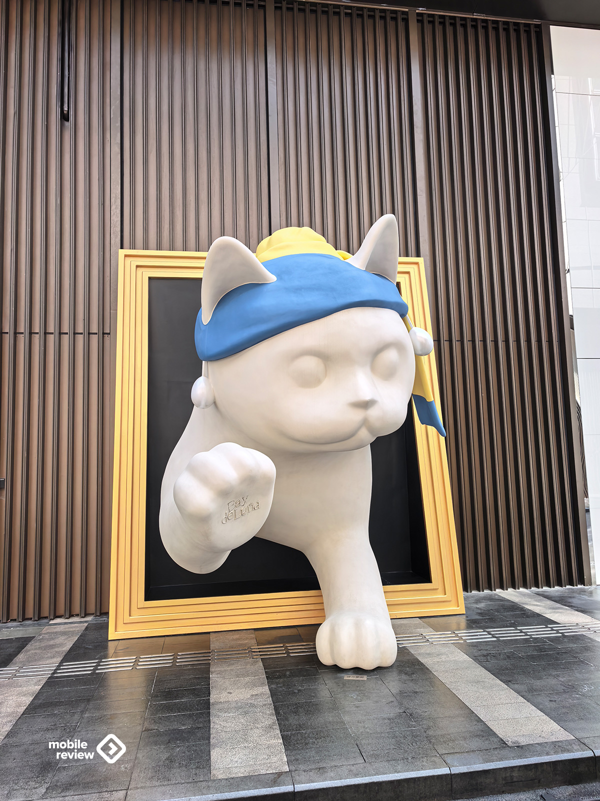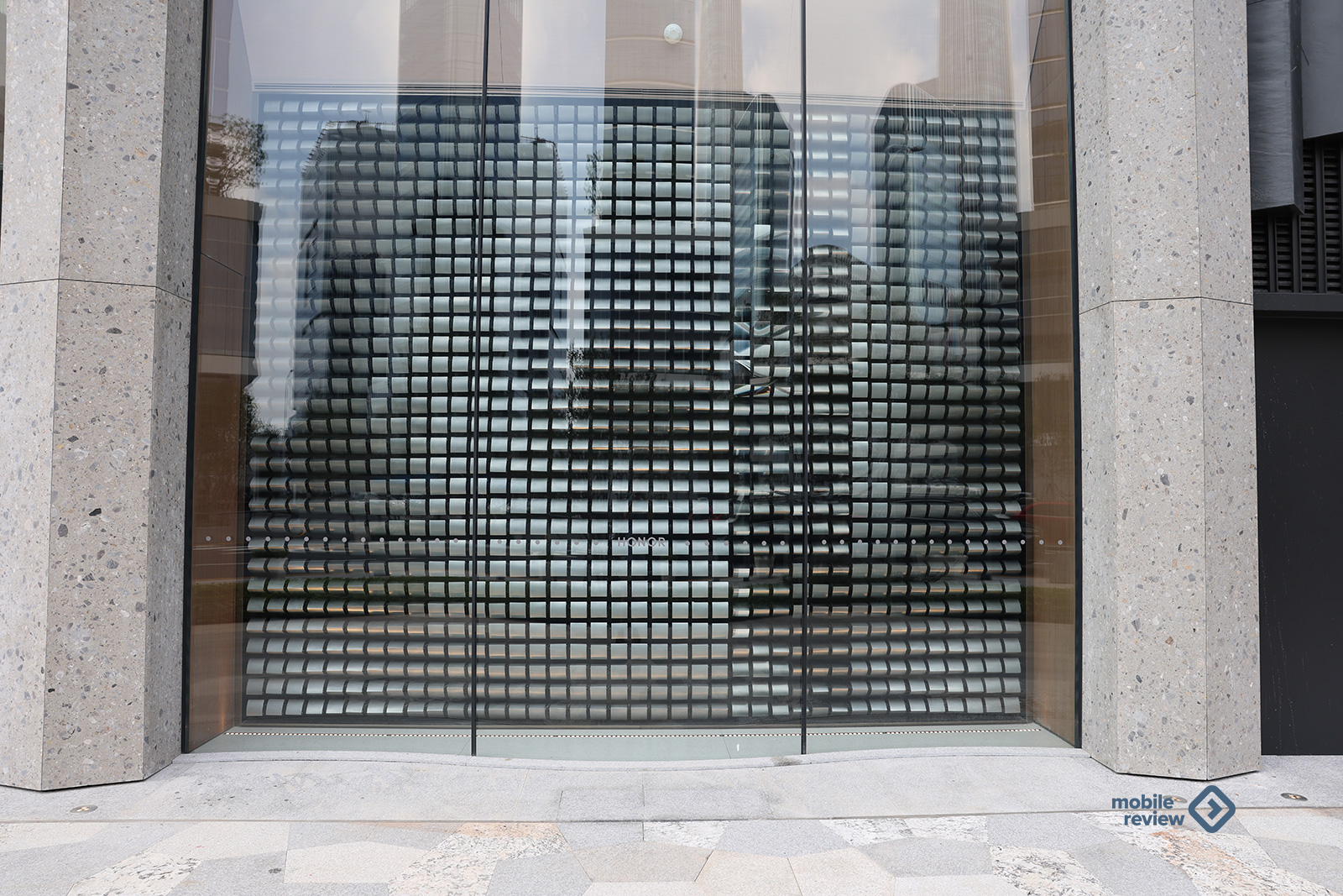 Если посмотреть с улицы, то магазин занимает два этажа, центральный вход сделан с боковой стороны, а с торца вы видите витрину с меняющимися кубиками, они рисуют в том числе букву альфа. Чем-то мне это напомнило Sony, но никак не Honor. Понять с полпинка, чей магазин перед вами, невозможно.