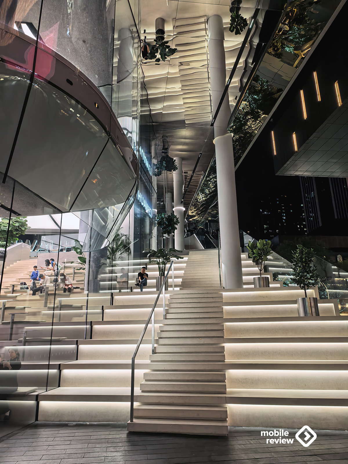 В целом, магазин производит впечатление того, что тут скрестили множество вещей из чужих наработок, в столах угадывается Apple, равно как и в лестнице, тут она, правда, не из стекла. В фоточасти и оформлении некоторых зон — однозначно Huawei.