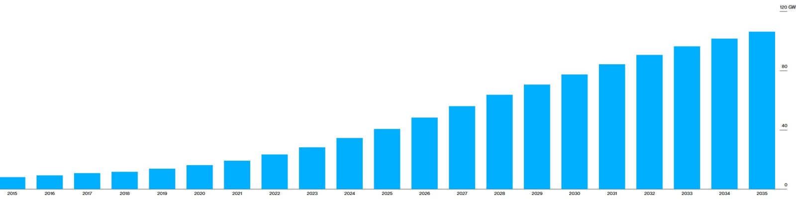 «По сравнению с традиционным дата-центром потребность в электроэнергии для центра обработки данных ИИ может быть в десять или даже в сто раз выше», — говорит Дэйв Маккарти, вице-президент по исследованиям International Data Corporation. По данным BloombergNEF (исследовательский центр в составе медиаимперии Bloomberg. — Прим. ред.), в период с 2026 по 2033 год объем электроэнергии, потребляемой дата-центрами в США, удвоится — в основном из-за энергетических нужд ИИ. Это повлечет за собой серьезные последствия для энергетических сетей и стоимости электроэнергии для потребителей, проживающих рядом с этими объектами. Ожидается, что за десятилетие спрос на электроэнергию для центров обработки данных в США утроится.