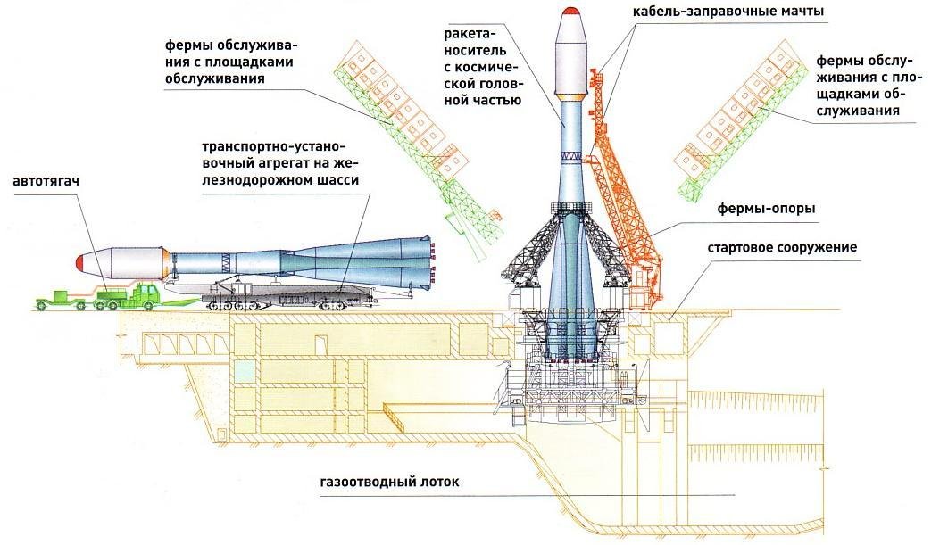 На схеме платформа обслуживания находится под ракетными дюзами и непосредственно перед стартом должна укатываться на рельсах в специальную защищенную нишу, чего не произошло.