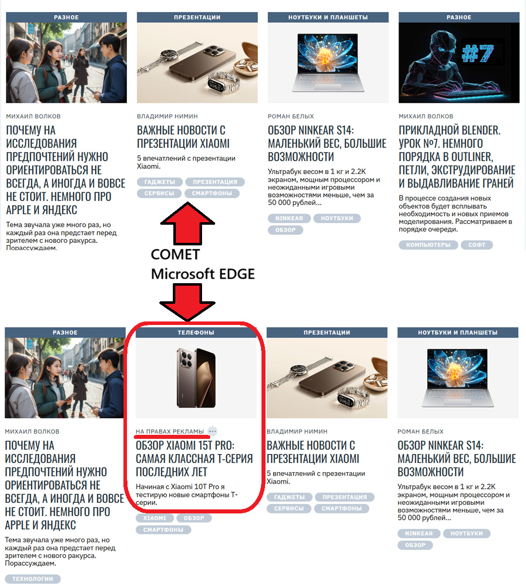 От этой функции я потерял дар речи. Это было довольно просто, потому что я приболел на днях и охрип. Через Perplexity я зашел на наш сайт и заметил, что браузер вычистил все статьи, в которых была пометка «На правах рекламы».