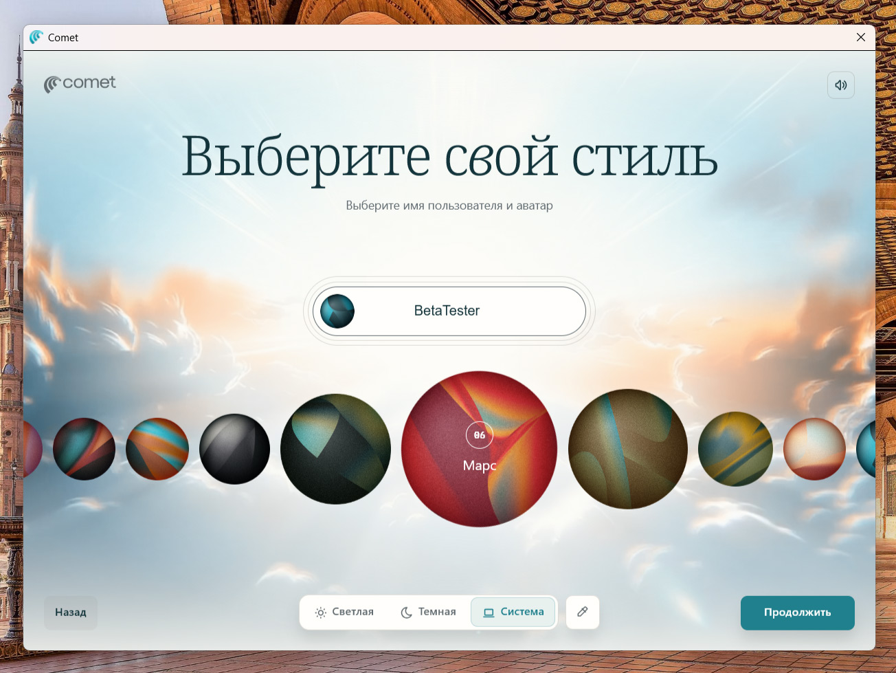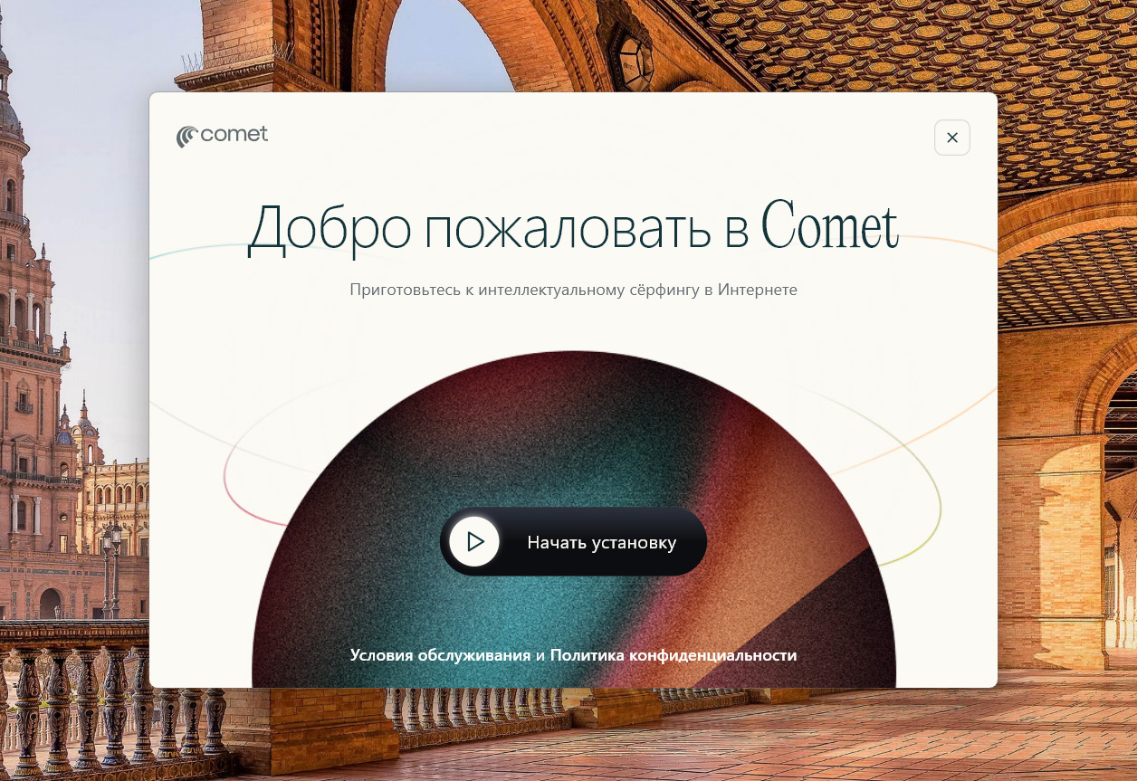 Во время установки Comet обильно пускает пыль в глаза. Это не установка браузера, а настоящее шоу с музыкой и звуковыми эффектами. Пользователь должен сразу понять, что это не очередной Chromium-продукт, а инновация. Я иронизирую, но процесс установки мне и правда понравился. Создает настроение.