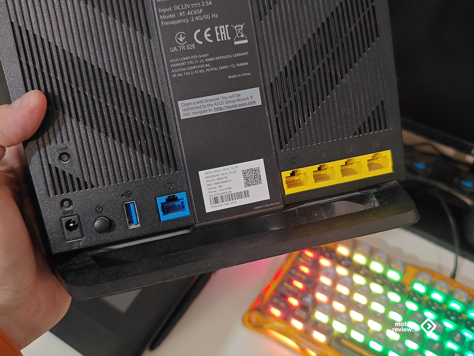 Что же касается интерфейсов подключений, то выглядит это тем самым базовым минимумом, который я использовал на обоих роутерах до покупки этого «ночника». Это питание, кабель от провайдера и кабель до системного блока: