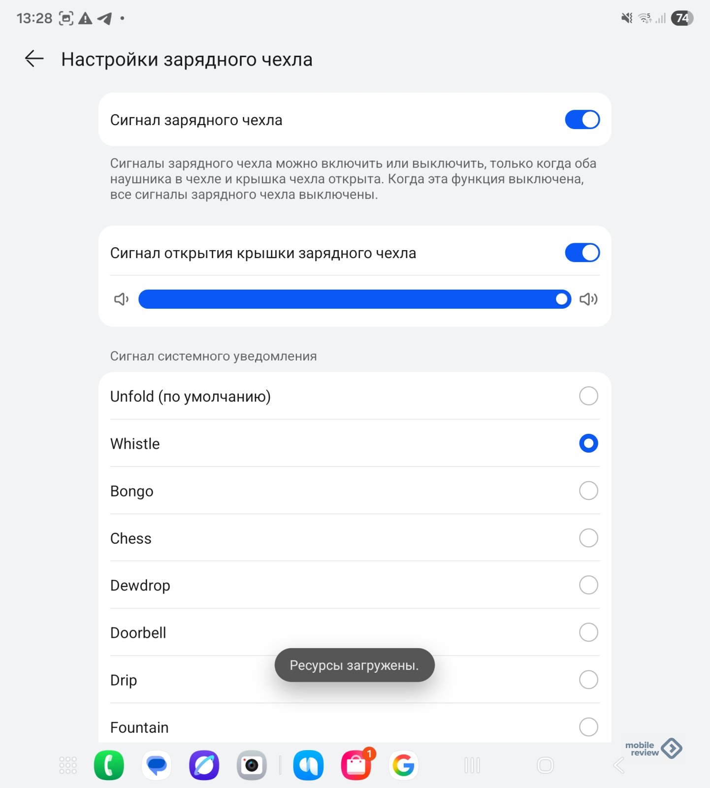 В настройках можно выбрать звук, с которым будет открываться чехол, он не очень громкий, но приятный. Динамик тут нужен для того, чтобы искать наушники с телефона, если вы забудете, где они. В том числе можно искать и сами наушники, они будут проигрывать мелодию.