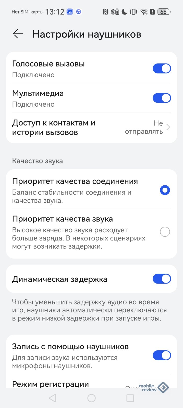 Теперь самое время обсудить качество звучания. И тут мы будем вначале говорить про связку с устройствами Huawei, так как здесь возможно использование последнего поколения адаптивного кодека L2HC, это проприетарная разработка Huawei. Оговорюсь, что наушники поддерживают одновременное подключение к двум устройствам. Если вы его включили, кодек L2HC выключается, а используется стандартный кодек с худшим звучанием.
