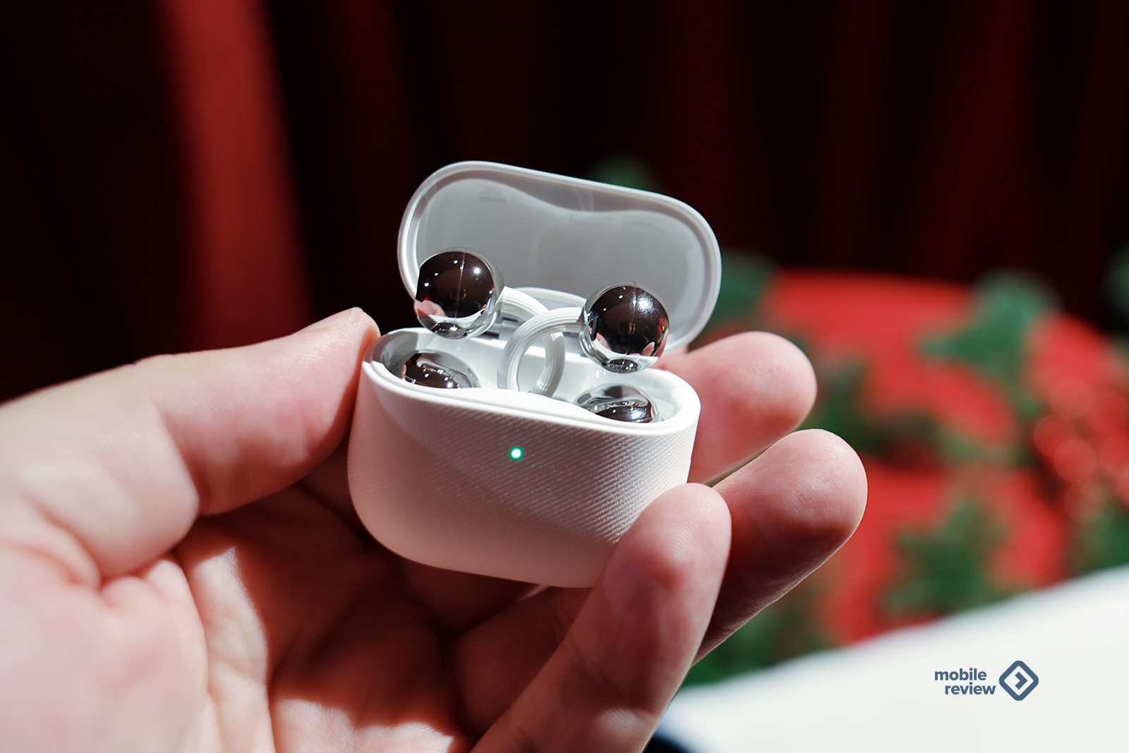Зарядный чехол поддерживает беспроводную зарядку, а также проводную через кабель USB Type C. Батарея в каждом наушнике 60 мАч, а в чехле — 537 мАч. Время зарядки по проводу – около 40 минут для наушников, а чехла вместе с наушниками – порядка 150 минут. Беспроводная зарядка займет чуть более трех часов.