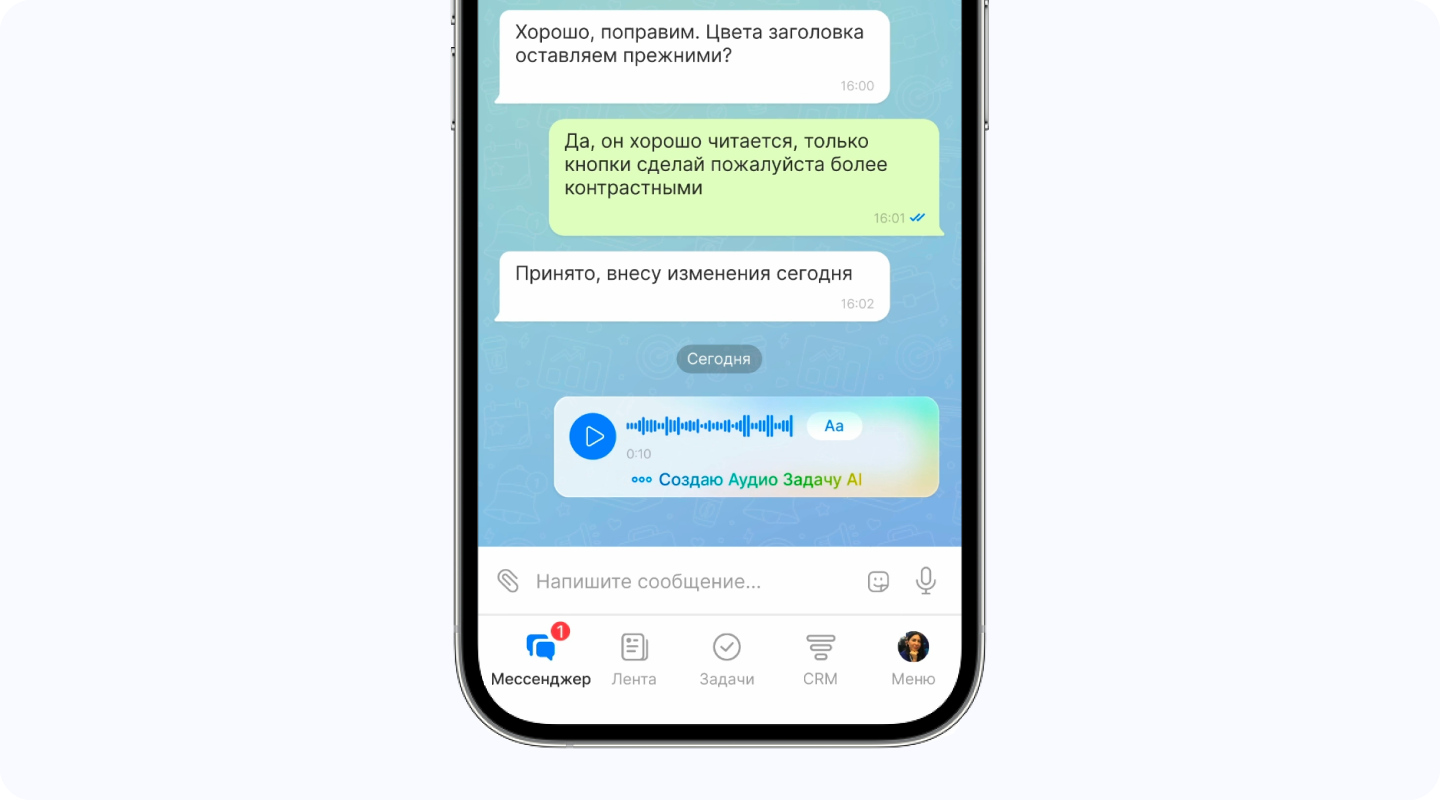 | Созд. встреч и задач из сообщ. | Да | |