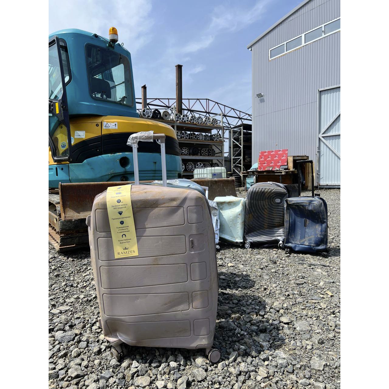 Летом 2025 года мы провели небольшой краш-тест. Отобрали топ-модели известных брендов, включая дубайские чемоданы Ramzes. Уложили их в ряд и пустили по ним 6-тонный экскаватор.