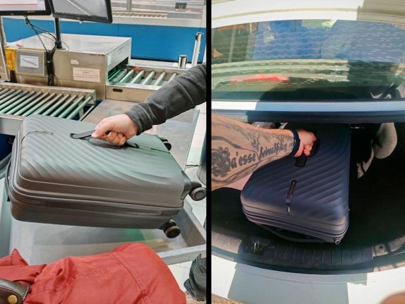Пластиковые, поликарбонатные и полипропиленовые чемоданы на вид могут казаться похожими, особенно для непосвящённых. Но разные материалы ведут себя по-разному. Полипропилен вот упругий, поэтому красный дубайский чемодан из примера в начале статьи и выдержал экзекуцию. А чисто пластиковый на его месте лопнул бы. Вполне вероятно, что даже на дорогущем алюминиевом чемодане вместо незаметной полоски в углу чемодана появилась бы вмятина. Которую уже невозможно было бы выправить.