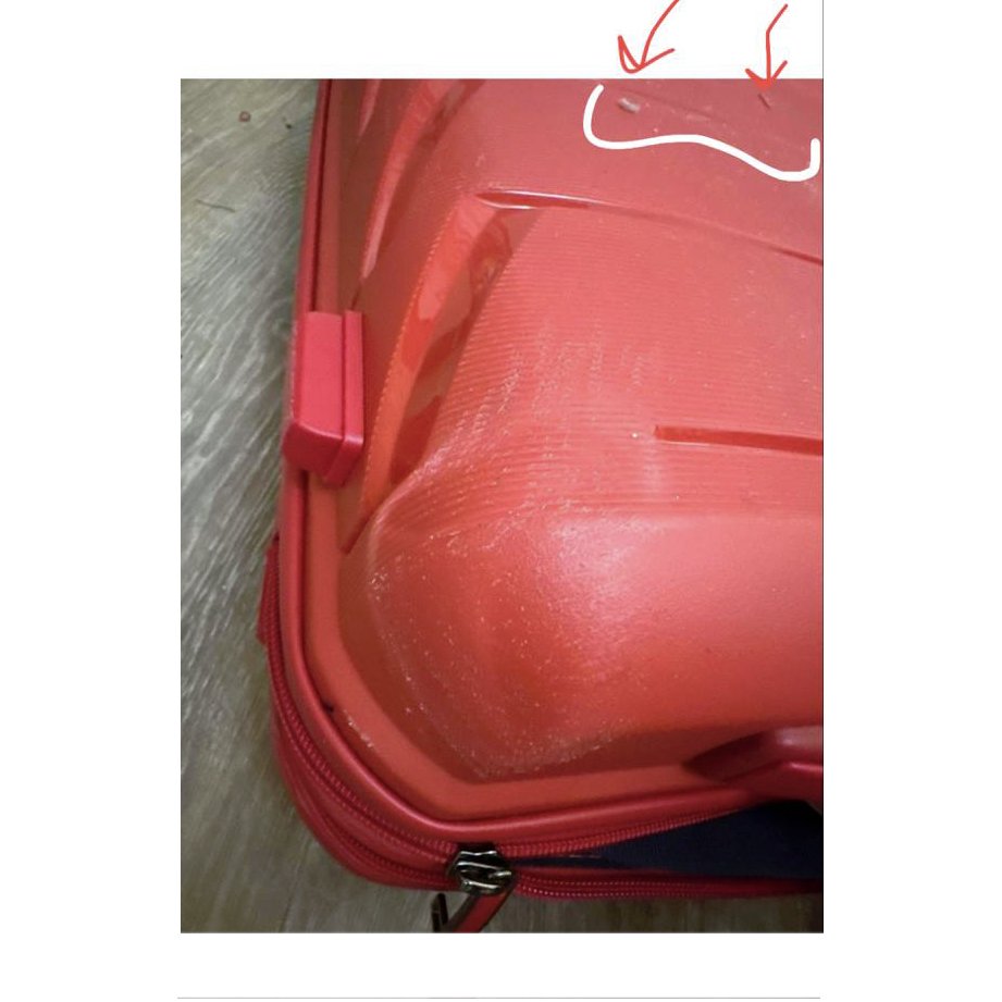 Глядя на фото и на следы «побоев», могу с уверенностью сказать, что грузчики специально уничтожали чемодан. Но все эти отметины говорят не о плохом качестве, а ровно об обратном — что женщина купила хороший чемодан, надёжный и прочный. Не зря ведь корпус у дубайских чемоданов сделан из усиленного полипропилена — армированного кремнием. Помятый угол покупательница выправила, а белую полоску в месте залома никто и не заметит. И ещё, открою секрет: подобные следы остаются на всех чемоданах – даже за полмиллиона рублей.
