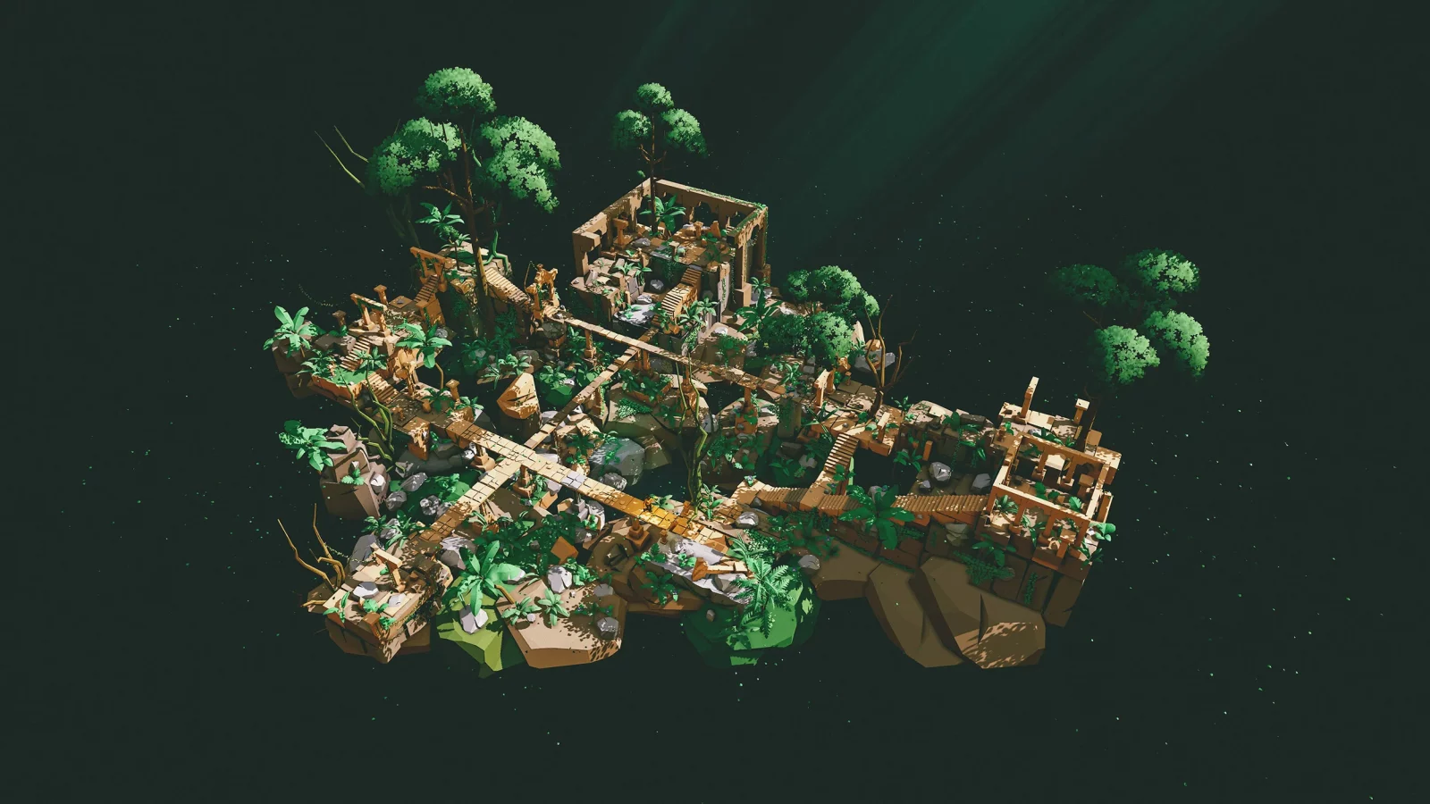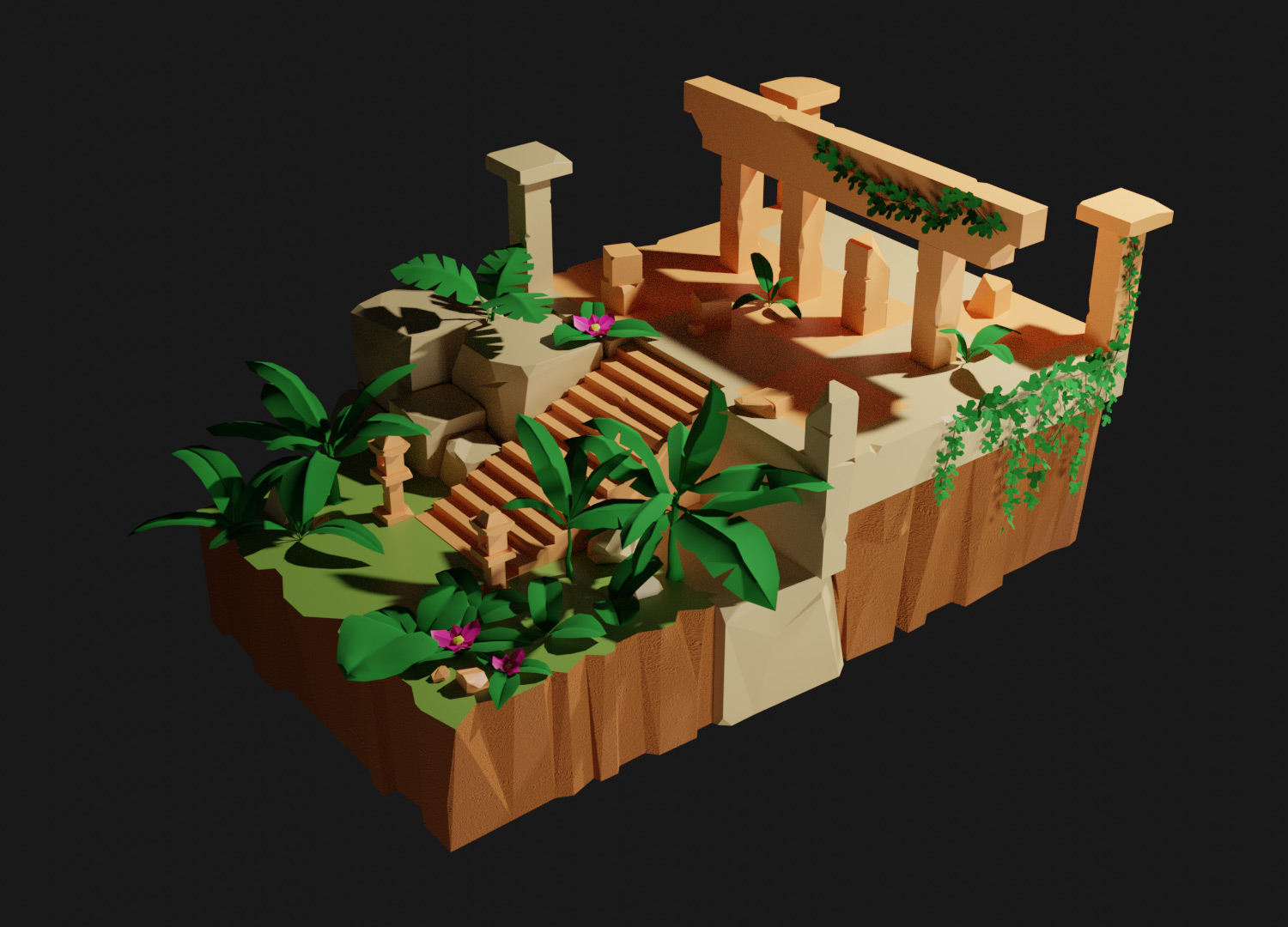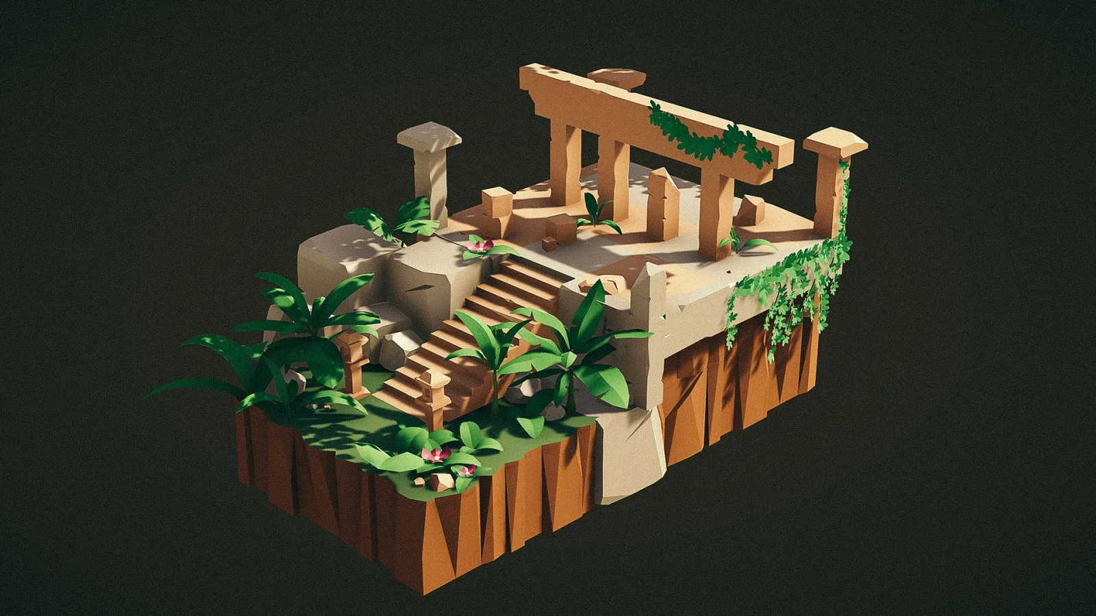 Ну а теперь давайте сделаем другой цветок на полку. Я выбрал вьюн, поскольку ему можно придать весьма интересную форму и добавить больше деталей в пространство комнаты. Плюс, вьюн всегда добавляет какого-то благородного колорита. Сегодня в Blender существует множество аддонов для этого типа растений, но часто они сверх детализированные и выбиваются по стилю. Давайте сделаем его хотя бы раз ручками. Я первый раз его делал, когда повторял сцену одной из работ студии Beffio. В частности, набора The Lost Lands. Весь макет со всеми объектами выглядел как-то так:
