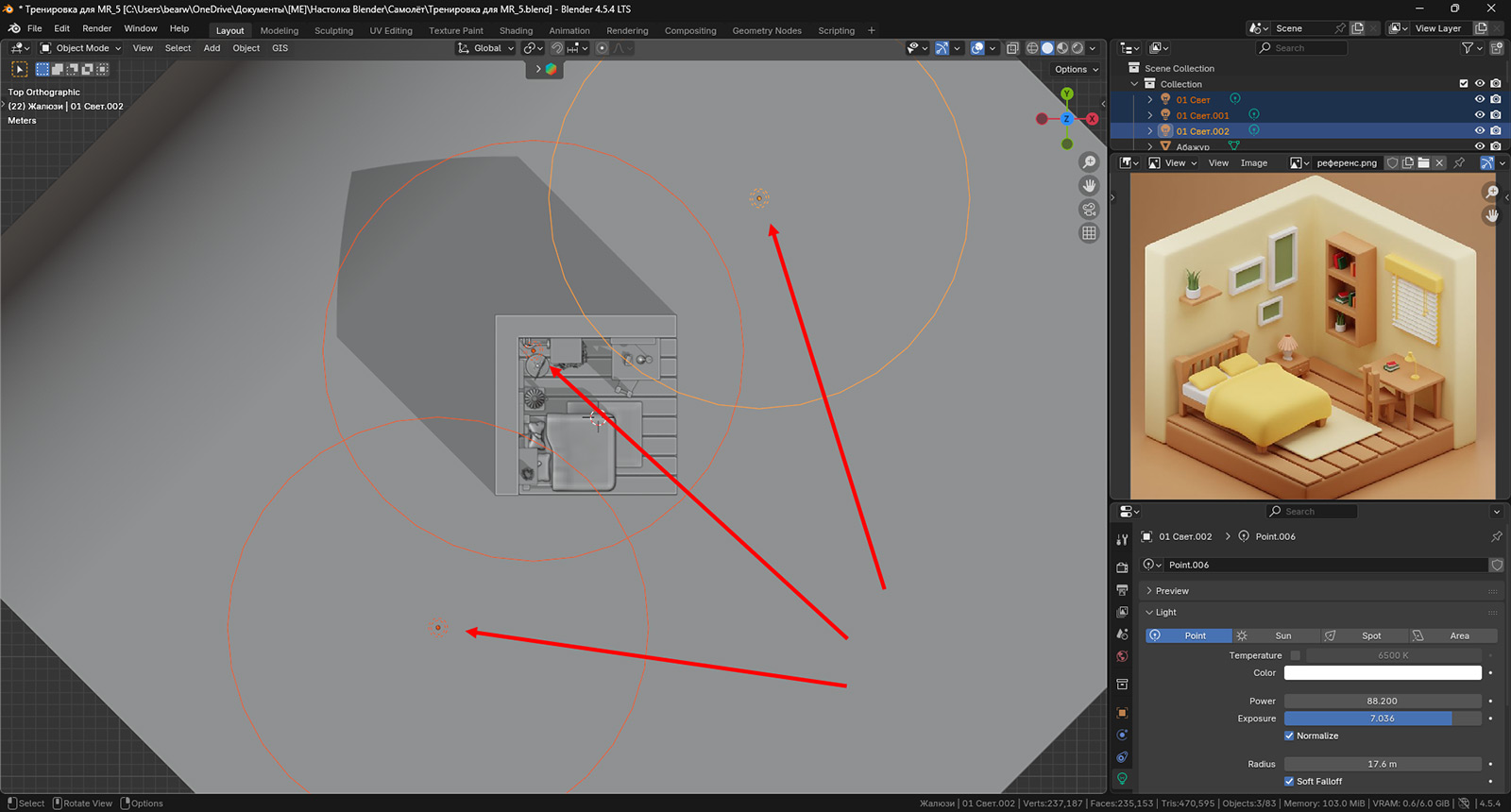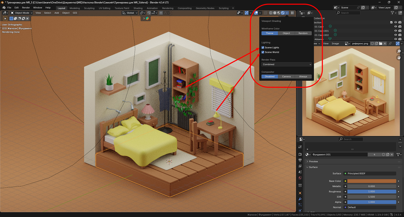 На следующем уроке кратенько их обсудим, будем выставлять камеру для рендера и, собственно, наконец уже его запустим.