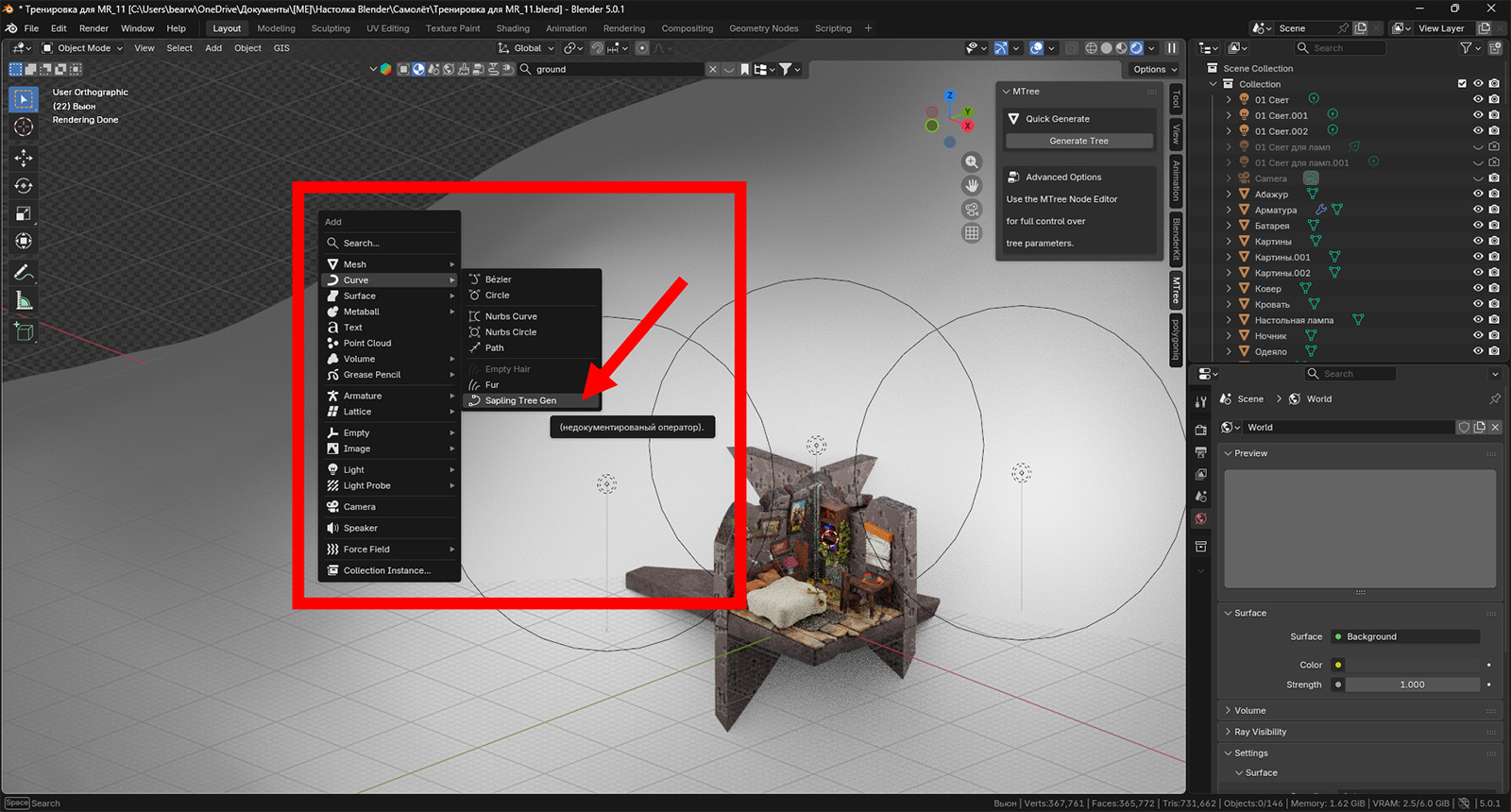 И ирония в том, что большинство этих способов вам не подойдет. Не знаю, в чем причина на самом деле, но так уж сложилось, что инструменты, зарекомендовавшие себя как работающие, почему-то не поддерживаются в новой версии. Или поддерживаются, но весьма частично. В инструкциях самого Blender периодически встречается комментарий, который звучит как offered as it is. То есть вроде как нравится — не нравится, а другого нет. Подобная история приключилась, например, с Sapling Tree Gen. Его все еще можно скачать, но удобства от использования маловато. Но если вдруг хотите попробовать, то он доступен по ссылке выше. Просто перетащите архив в открытое окно Blender. А после запускайте по пути Add → Curve → Sapling Tree Gen.
