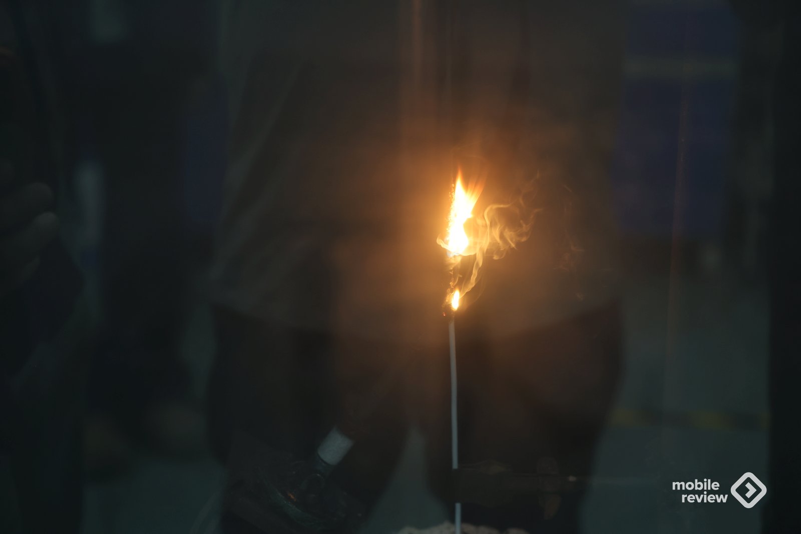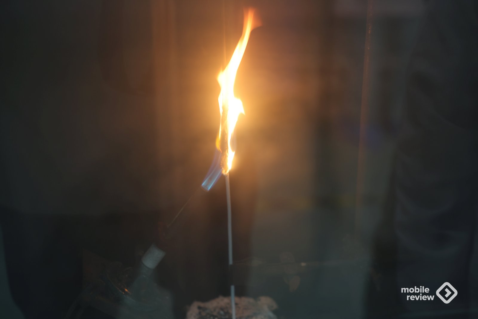 Главная задача тут – проверить, что оплетка кабеля не воспламенится, она не должна гореть. В этой лаборатории нет машин, в которых полностью сжигают кабель, чтобы проверить выделяемые вещества (они не должны содержать большие дозы вредных примесей, человек должен иметь возможность дышать — на людях это, конечно же, не испытывают, стоят автоматические газоанализаторы).