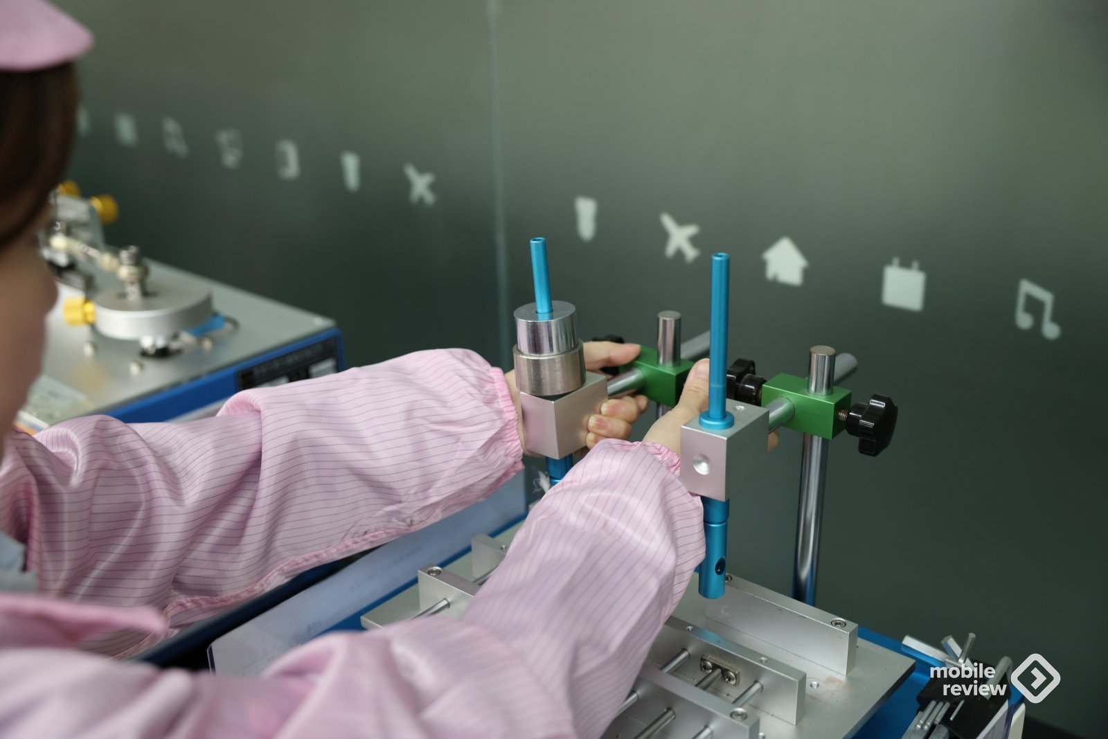 У нас нет задачи осмотреть все лаборатории, нам схематично показывают производство, но позволяют все фотографировать и оценивать. На заводе аксессуаров лаборатории небольшие, на производстве тех же смартфонов они занимают крупные помещения, разбиты по тематикам (механическая, атмосферная, испытание материалов и так далее, их десятки).