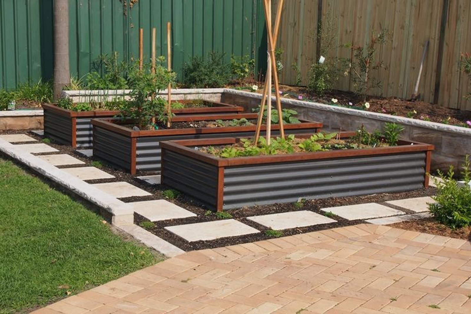 Как правило, на рынке представлены оцинкованные или крашеные разновидности профлиста. Такие грядки часто продаются комплектами для сбора, поэтому легко собираются, их дешевле красить (видели ценник на краску по дереву?), а еще металл намного лучше передает весеннее тепло от солнца в почву. К несчастью, контакта с почвой все равно не избежать и сколь угодно качественно обработанный или оцинкованный тонкостенный металл рано или поздно сдастся.