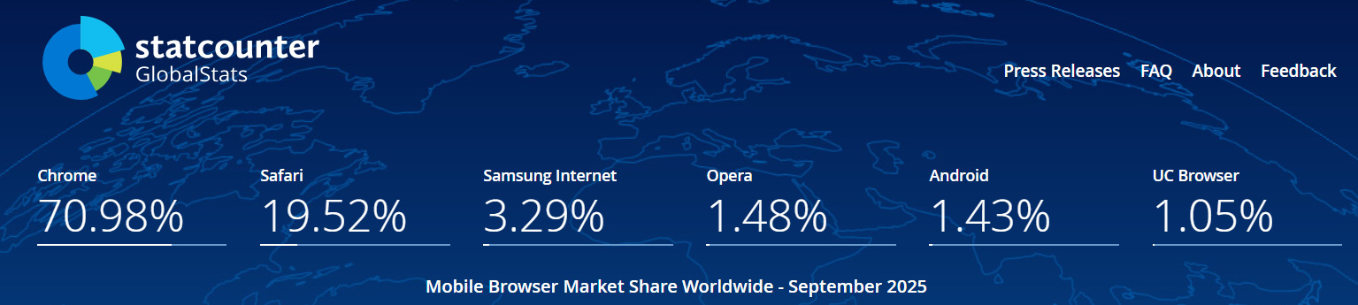 При взгляде на новостную ленту с многочисленными обзорами и дебатами о новых браузерах кажется, что это динамичный и горячий рынок. Однако открываешь статистику долей мобильных браузеров, а там: