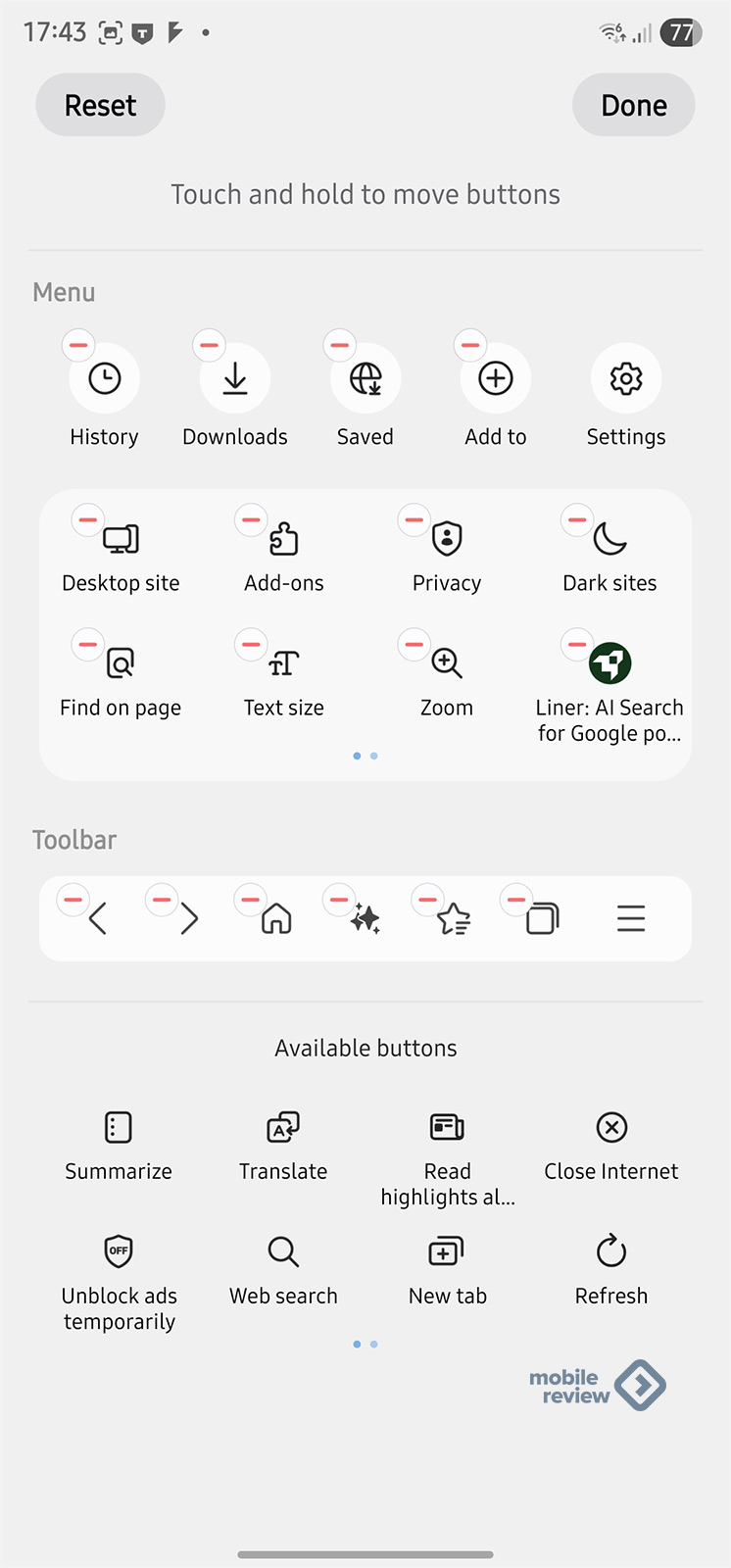 Расширения у Samsung Internet есть, но их немного. Складывается впечатление, что в каталог допускают ограниченный круг партнёров. Например, недавно появилось расширение LINER — конкурент Perplexity. Выглядит странно, так как вся суть расширения в том, чтобы быстро открывать страницу LINER. Да и если вы подписчик Perplexity, LINER вам не нужен, а добавить расширение Perplexity нельзя.