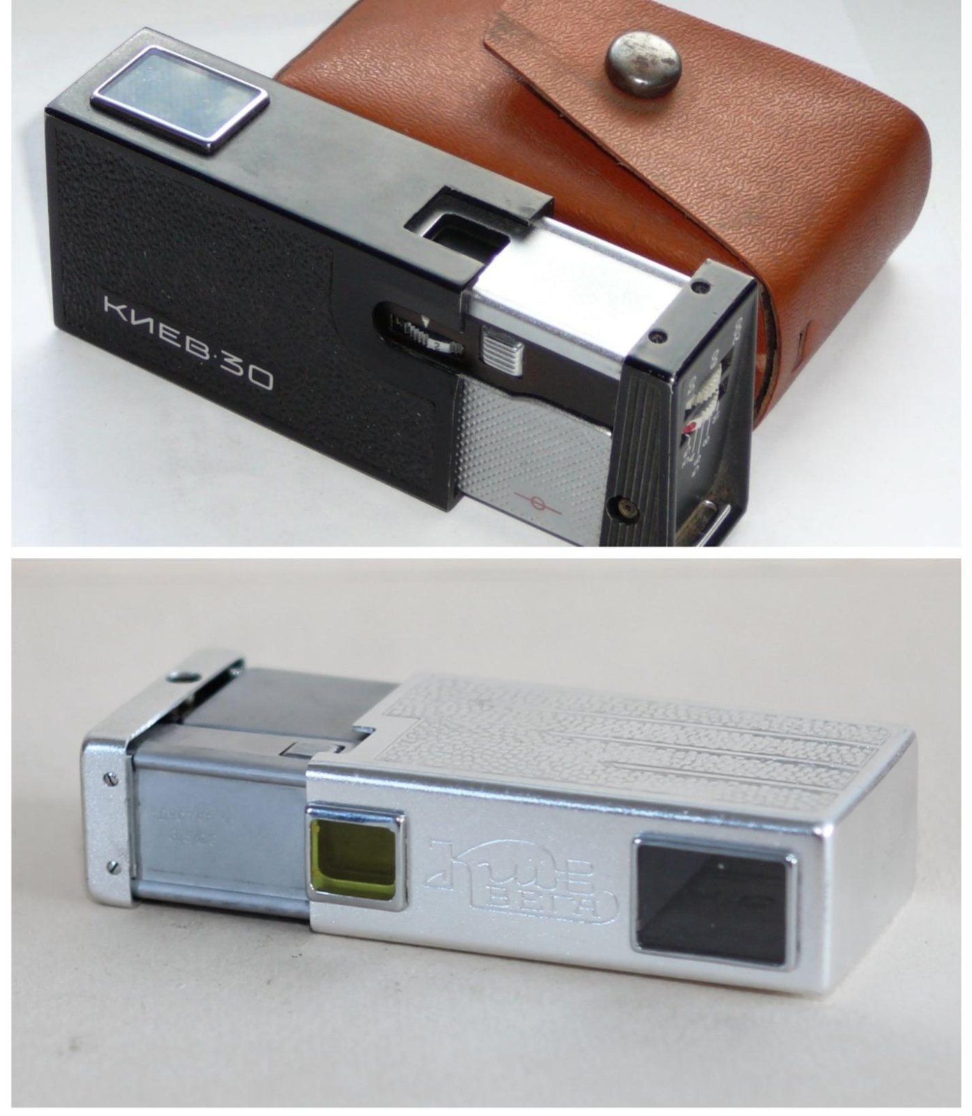 Фотоаппараты вполне можно было уместить в пачку сигарет. По сравнению с предшественником «Киев-30» обзавелся регулятором расстояния от полуметра до бесконечности