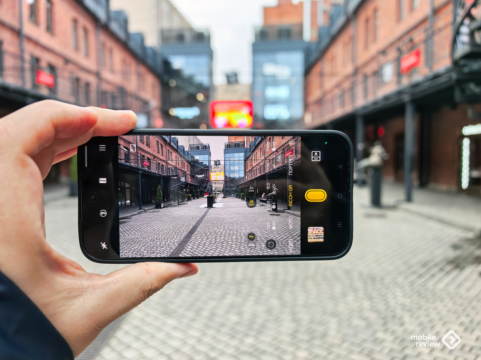 Хочется сказать, что слоган модели — «Один телефон, две души». Перед нами попытка, не отказываясь от цифровых наработок, дать возможность снимать в стилистике RICOH GR, когда обработка снимков не такая агрессивная, без тотального использования нейросетей. В realme подчеркивают, что появившийся режим RICOH GR — он виден в главном меню фотосъемки — заметно отличается от привычных настроек камер в телефонах. Перед нами не просто дополнительный фильтр, а целая философия, спрятанная за клавишей.