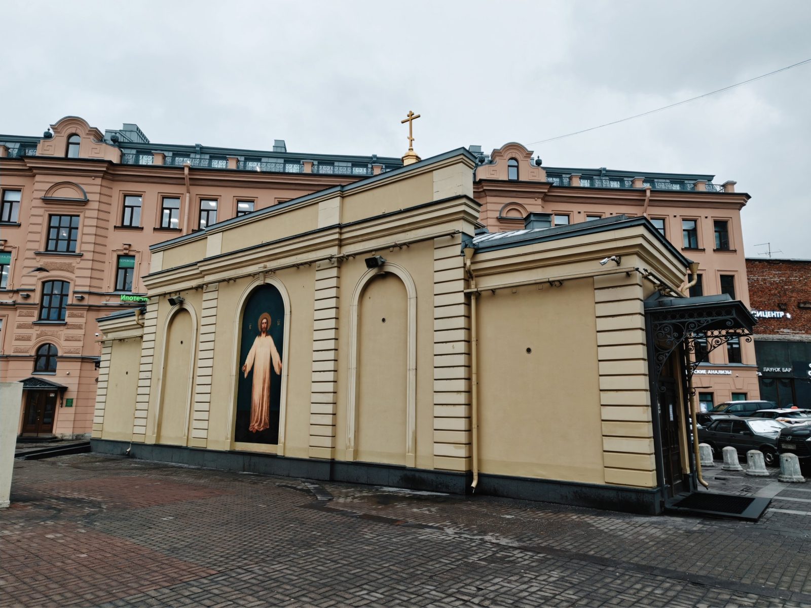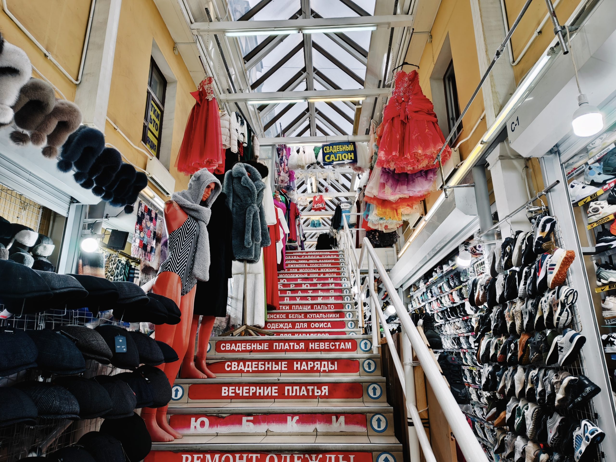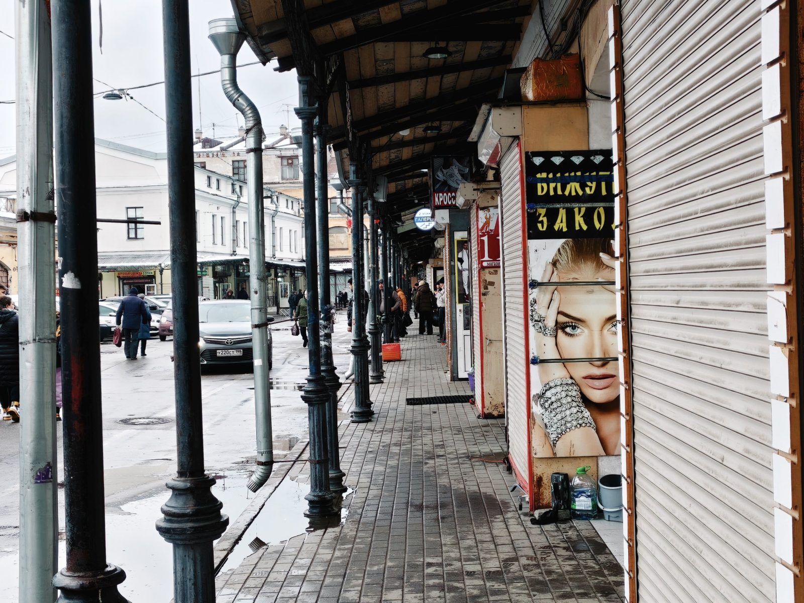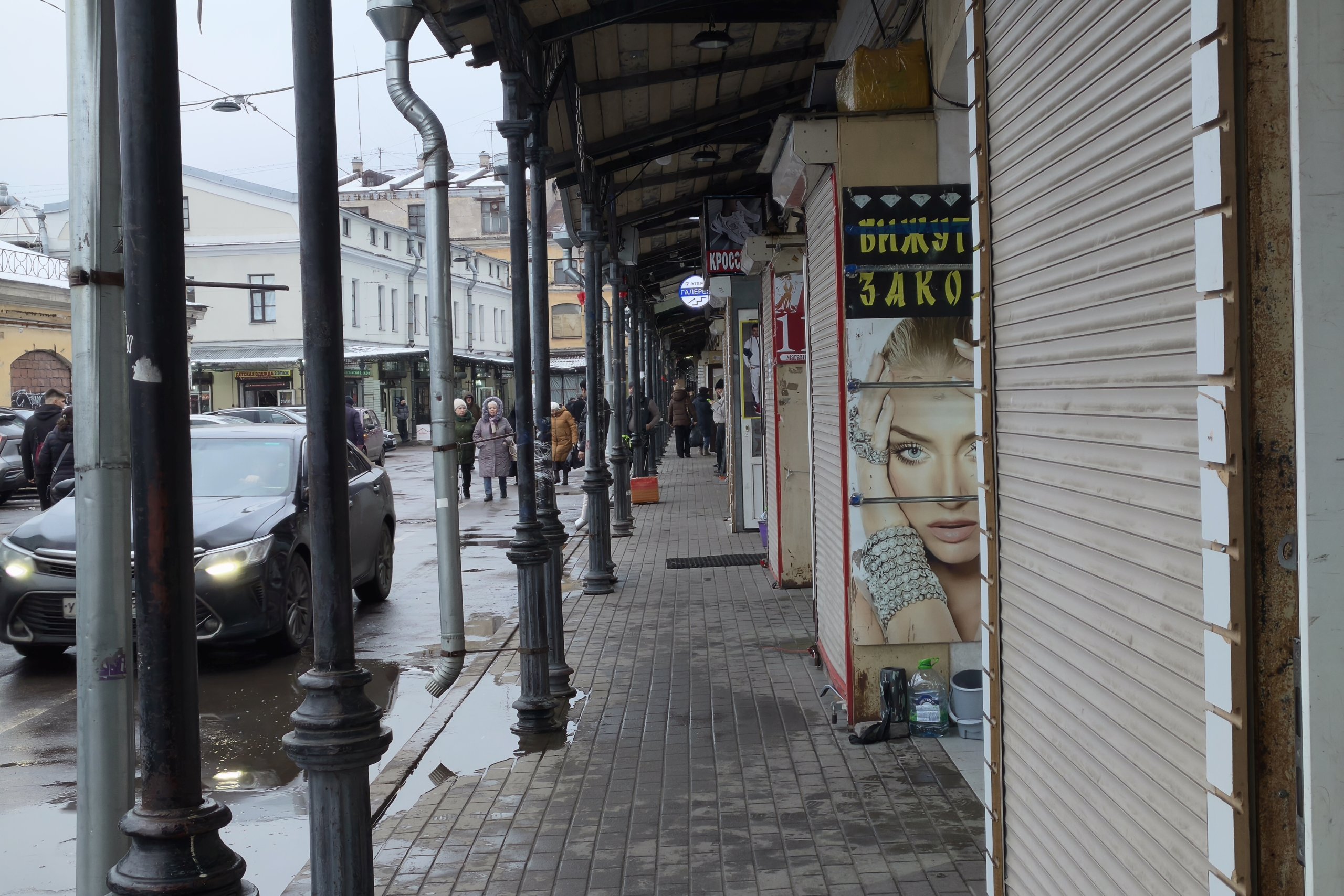 В примерах выше мы показали сравнение режимов без упора на то, где один вариант выигрывает у другого. Давайте посмотрим на снимок торговых рядов Апрашки. Тут режим RICOH дает приглушенную картинку, он далек от идеала. А вот обычный снимок, напротив, яркий и хорошо подчеркивает контраст плаката справа.