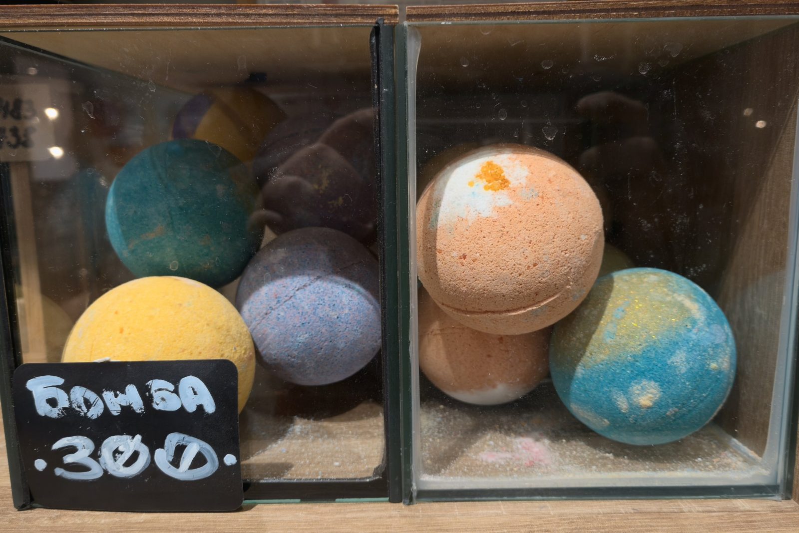 Другой пример — фигурки на полке в магазине или бомбочки для ванной, тут режим RICOH дает картинку, которая смотрится выигрышнее.
