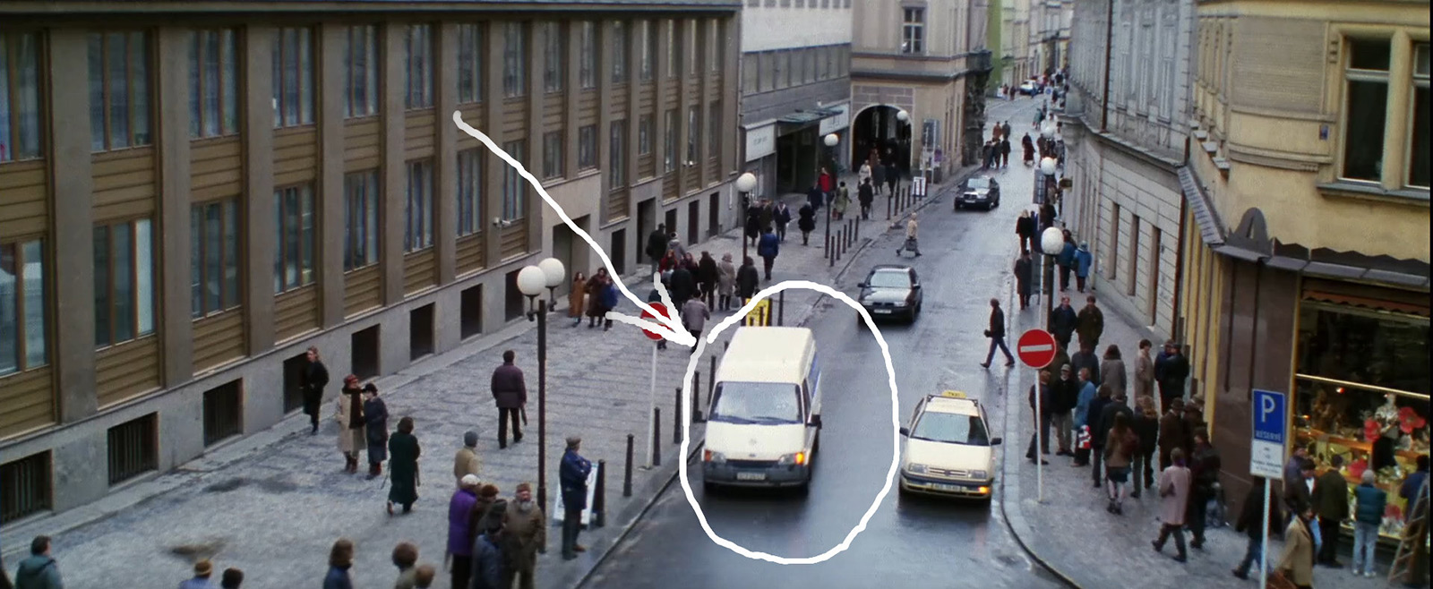 Поскольку зритель уже забыл, что было в самом начале, то вот вам немного здравого смысла в вопросах слежки, который (здравый смысл) ранее был заменен очками и каким-то веществом, видимым только в них. Сейчас на парня повесили банальный маячок.