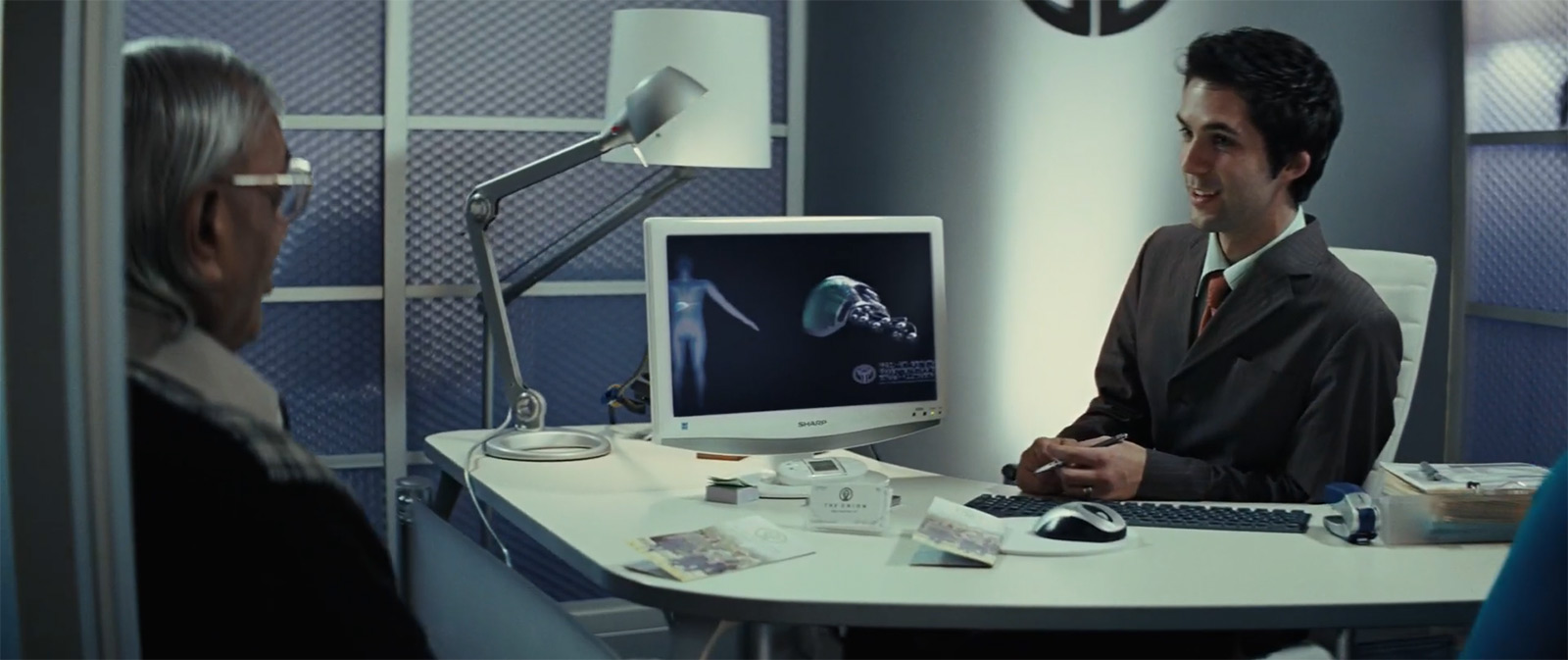 Итак, поехали. Сюжет предлагает нам картину мира, когда власть сконцентрирована в руках финансовых организаций, которые зарабатывают на кредитах, выжимая людей. В 2009 году подобное откровение выглядело весьма футуристично (по крайней мере, для меня), но сегодня это реальность. Кредит на машину, чтобы ездить на работу, чтобы оплачивать кредит на машину; кредит на ноутбук, чтобы выполнять фриланс-проекты, чтобы было, чем платить по кредиту на ноутбук; рассрочка (ха-ха) на iPhone, чтобы выкладывать красивые личики (и не только) на стримах, чтобы платить кредит за iPhone. Вот это вот все. В будущем же по сюжету фильма главным вкладом явилось здоровье. Из-за ухудшившейся обстановки люди вынуждены идти на имплантирование себе искусственных органов, чтобы увеличить продолжительность жизни, необходимой для того, чтобы достигнуть заветного карьерного роста, успеть осуществить свои мечты, поддержать семью, поднять детей… сказал бы я, если бы речь шла об утопии и розовых единорогах. На самом же деле органы нужны, чтобы работать, чтобы оплачивать органы. И аналогично судебным приставам, которые изымают залоговую собственность при просрочках выплаты кредита, здесь изымают органы. Вот уж стимул задуматься о профессиональном и личностном росте, когда внезапно повиснет обязательство отрабатывать собственную возможность дышать. История же строится вокруг работника по изъятию органов, которому не повезло мигрировать по другую сторону и оказаться в должниках у своего же работодателя. А теперь — к технологиям.