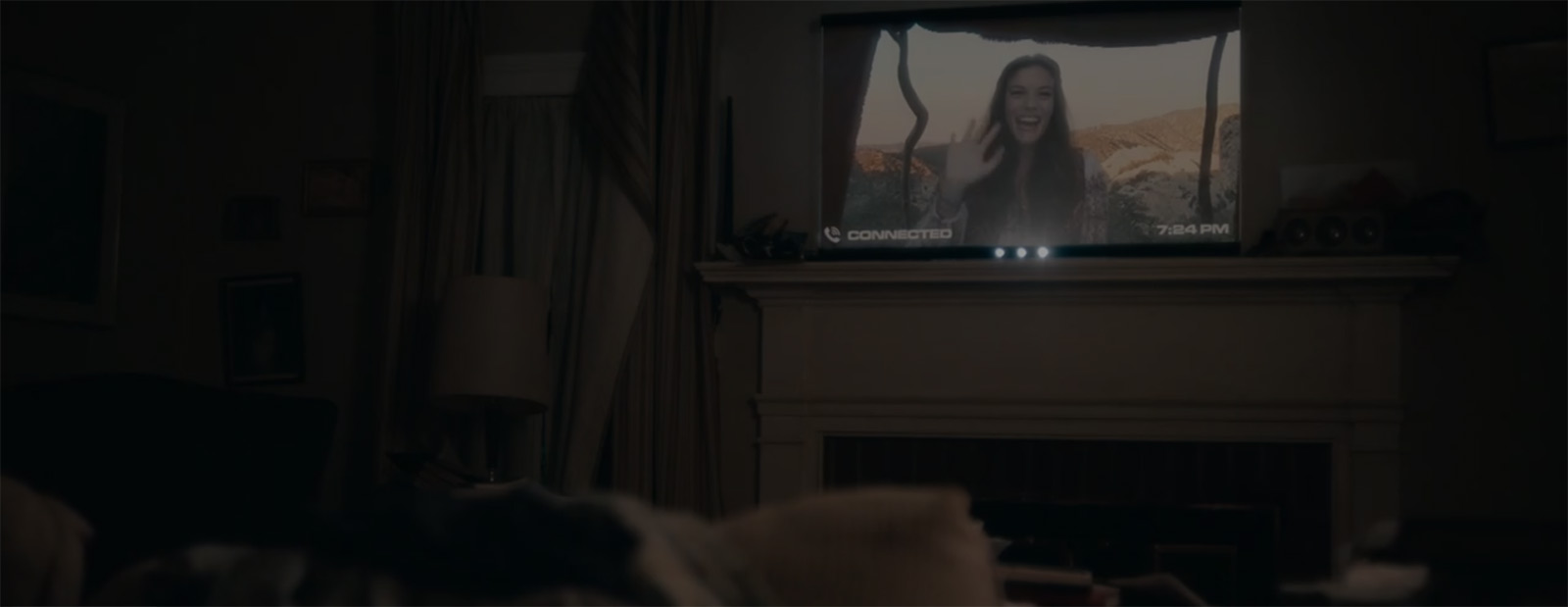 Выше вы можете видеть счастливое лицо дочери Фрэнка, которую играет Лив Тайлер (по сюжету ее зовут Мэдисон). Способ коммуникации мне показался очень удобным для пожилых людей. Голосовое управление, хорошая видимость звонящего, и ничего в руках держать не нужно. Правда, спрятать бардак в комнате не получится. Фрэнк, например, предстал перед дочерью вот в таком виде: