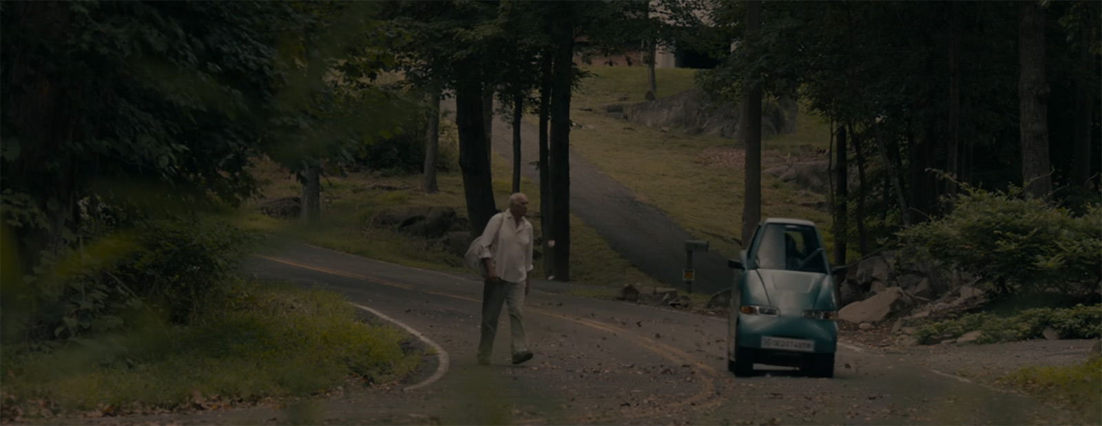 День Фрэнка начинается с пешеходной прогулки в город. Сам он проживает в пригороде. И как во всей традиционной Америке, предназначенной для перемещения на личном автомобиле, путь до центра проложен исключительно для личного транспорта. К слову, Фрэнк и не пытается считаться с этой особенностью современной жизни и идет непосредственно по проезжей части, в общем-то, сильно рискуя. Нам показывают момент, как его объезжает двигающаяся его же маршрутом машина.
