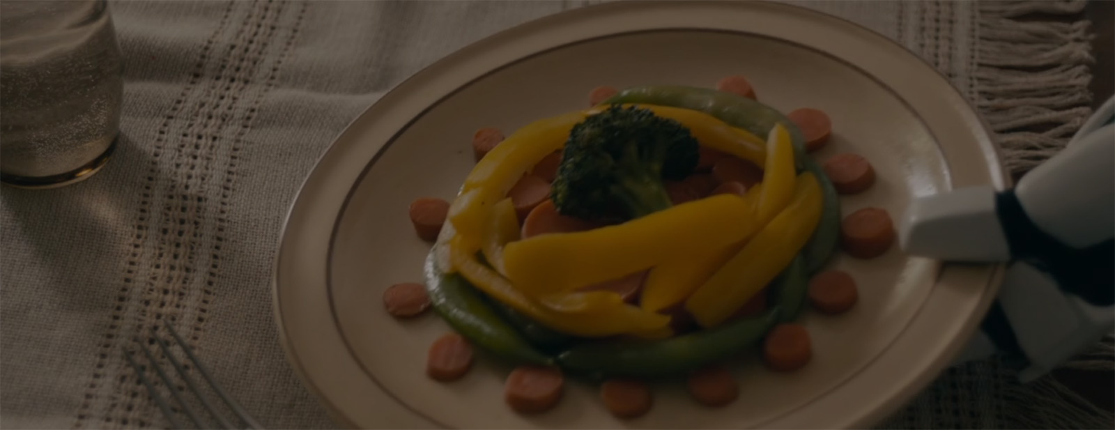 В фильме же робот самостоятельно исследует вверенные ему «угодья», чтобы составить четкую картину о возможностях. Мечта Lecron’а. О выигрышности подобной концепции он толкует с самого начала моего упоминания о том, что человекоподобные роботы — это утопия. За что точно хочется похвалить разработчиков робота, так это за четкое представление того, в чем полезность этой машины. Робот безапелляционно контролирует рацион своего подопечного, не отклоняясь от него ни под каким предлогом. То есть, если хочется, чтобы тебе готовили еду, придется есть здоровую пищу. Система определенно выигрышная. Я не так давно делился своим опытом эксплуатации автоматической кормушки для кота и указывал, что животное привыкло к режиму, не переедает и чувствует себя лучше. Адекватно реагирует на кормление и понимает, что машину уговорить жалобными глазами не получится (надеюсь, понимает). Здесь ситуация примерно та же самая. Кстати, хотя я и отрицаю человекоподобных роботов как вероятное будущее, я искренне жалею, что подобные штуки отсутствуют только из-за того, что они могли бы контролировать меня как кормушка кота. На жену никакой надежды. Постоянно готовит что-то вкусное и, конечно, вредное для фигуры.