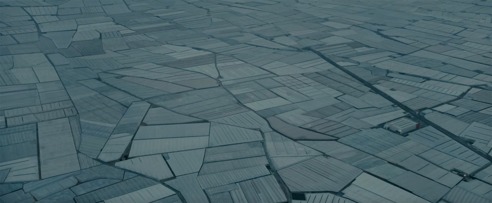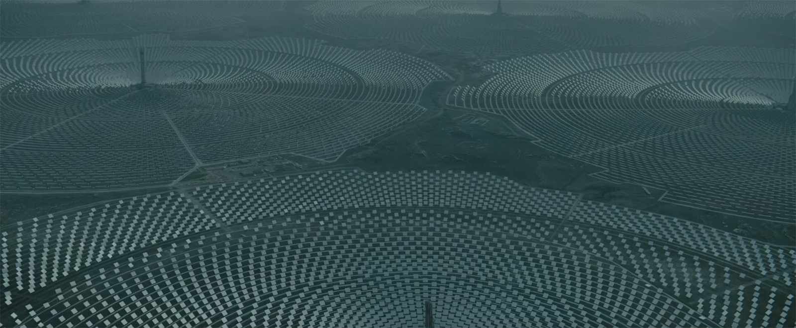 Фильм начинается с кадров мрака, где нам сразу же демонстрируют огромные территории, занятые фермерскими угодьями. Причем не просто пашнями и засеянными различными плодово-овощными культурами полями, а сугубо технологическими достижениями инженеров, направленными на выживание на мертвой земле. Сначала мы видим энергетические станции на солнечных панелях.