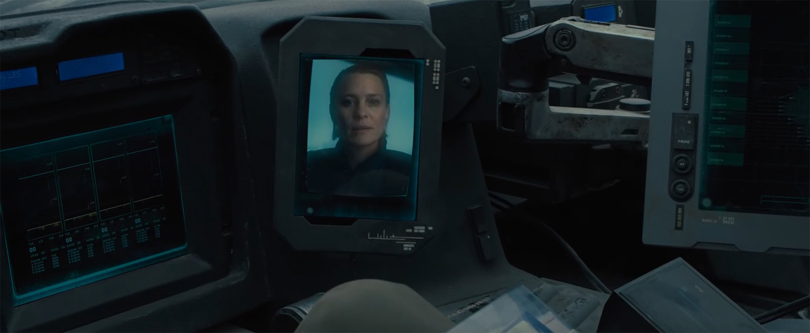 Разумеется, машина корпоративная, и чистота салона не всегда у пользователей будет на первом месте, но перед нами не грязь, а именно поношенность. Взгляните на держатель планшета. Собственно, если расценить и Джо как машину, то видно, что он эксплуатируется исключительно в рамках своей функции, без особого сострадания со стороны начальницы. Из фантастических технологий стоит отметить возможности сканирования. Посмотрите, что умеет дрон с высоты десятка метров: