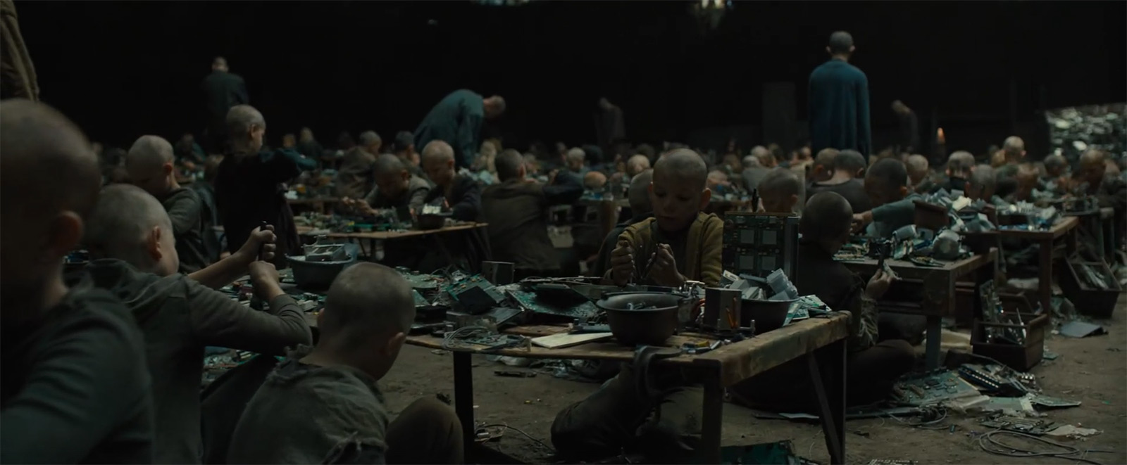 Люди же между тем уже чуть ли не с рождения в буквальном рабстве. Мы видим сотни детей в заброшенных цехах промзоны, где они занимаются разбором и сортировкой неработающей электроники: