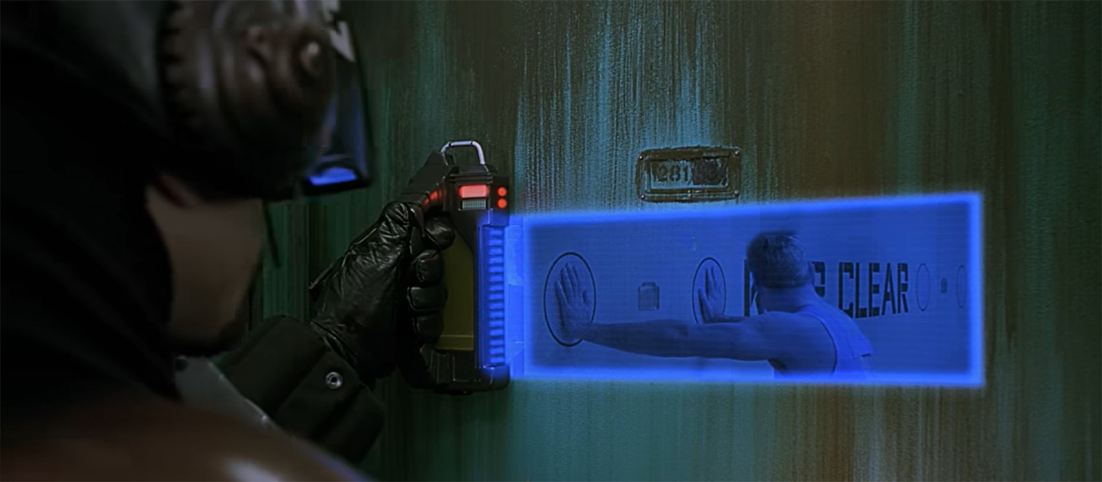 Находок интересных в фильме хватает. Например, просвечивание жилища для контроля граждан во время полицейских рейдов. Здесь вам и громкая связь для каждой квартиры, и портативные голографические дисплеи у сотрудников, и строго отведенные места для сканирования. Нечто подобное мы могли видеть в «Особом мнении», где для идентификации граждан в здание запускались миниатюрные дроны. Здесь же как будто бы сделано логичнее.