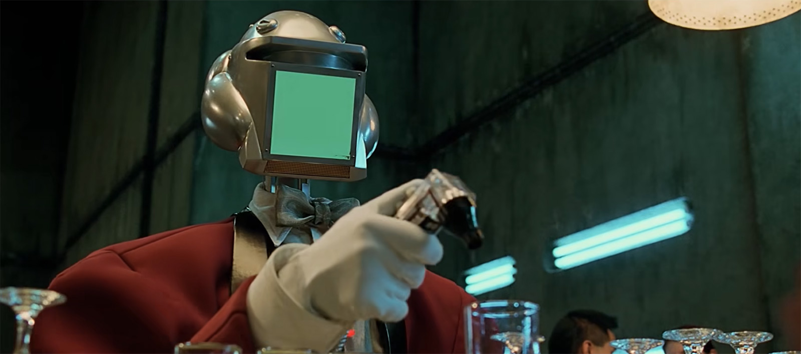 Еще одной разновидностью роботов в мире будущего является обслуживающий персонал. И хотя парой кадров выше у нас был работящий повар-азиат с собственным пунктом питания, в качестве бармена в аэропорту все же стоит человекоподобный истукан.