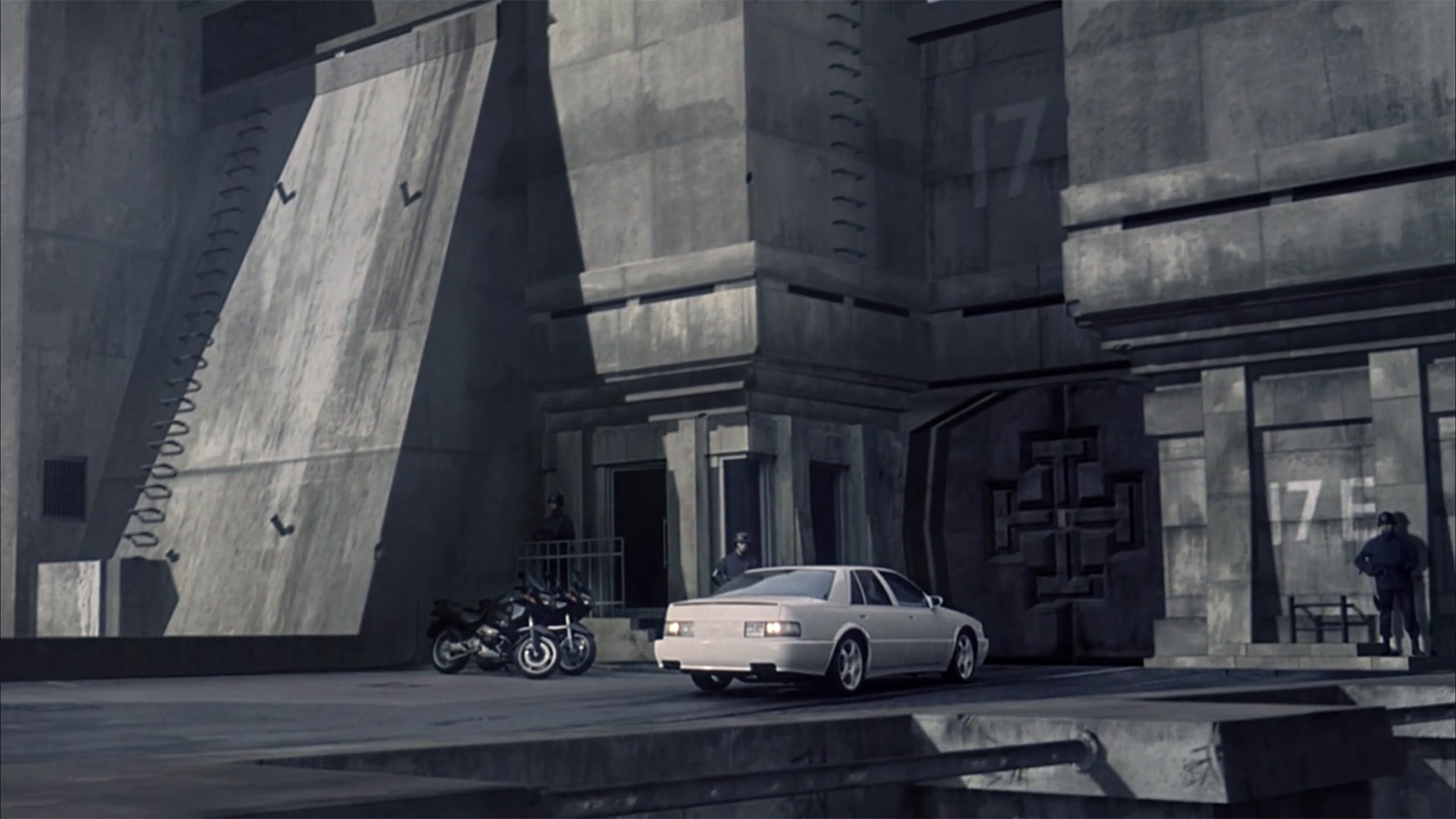 Начало фильма сопровождается субтитрами и закадровым голосом, который вводит нас в курс мироустройства. И когда я смотрел этот фильм первый раз, то начало мой разум старался интерпретировать как нечто правильное. Вроде как не могут же главные действующие лица быть плохими. Но после кадров задержания нескольких гражданских и, собственно, причины их задержания я подумал, что что-то тут не так. Юн был. Не сразу ухватывал суть.