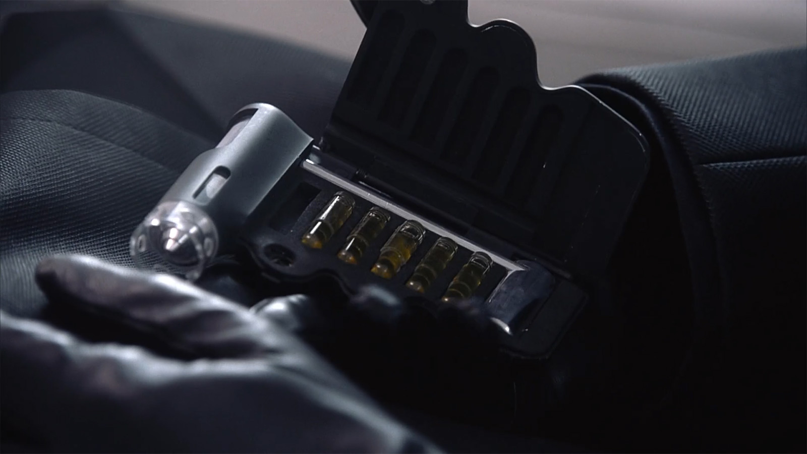 Смущает отсутствие защиты от дурака. Открытие, извлечение ампулы, установка ампулы, закрытие, введение. На первых трех этапах очень легко не просто одну ампулу разбить, а вообще всех лишиться. Уже в начале фильма нам показывают кадры, где этот процесс происходит в толпе. Даже при автоматических, выверенных до мелочей движениях, запросто можно зацепиться за соседа. И вот вся обойма с препаратом летит на асфальт. В общем, как-то не очень продумано.