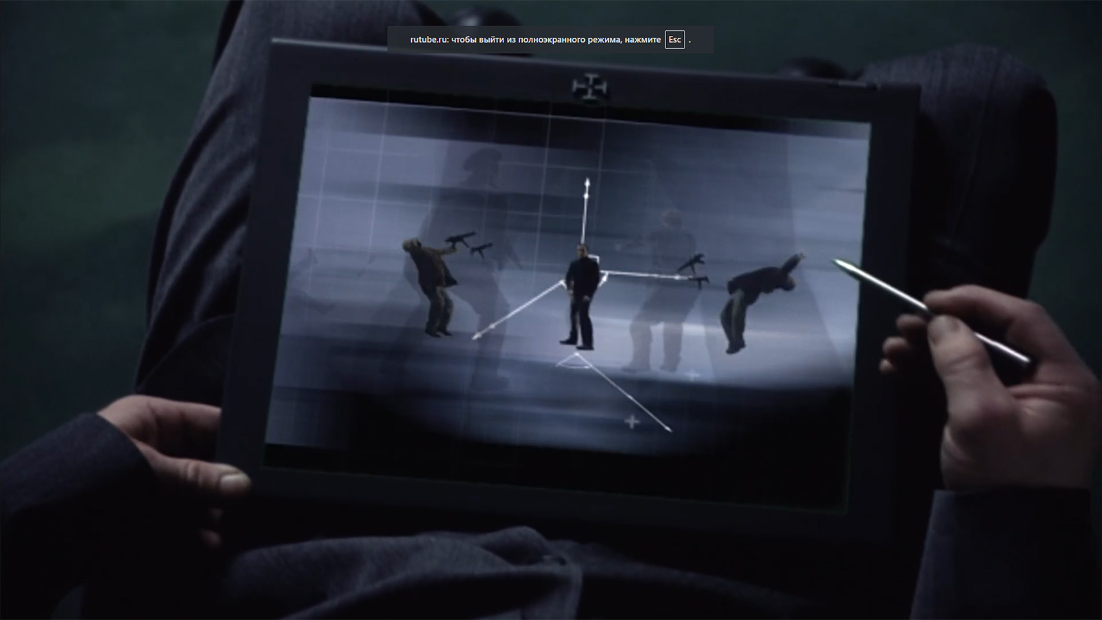 Ну разве не впечатляет? Вот только если проследить за действиями врагов, то станет понятно, что успех Престона во многом зависел от того, что бойцы как будто бы и не пытались в него стрелять. Такие дела. Кстати, мы пропустили планшет со стилусом, на котором (планшете) была запущена анимация боя в соответствии с эксклюзивной системой. Еще один камешек в огород организации устройств ввода данных, среди которых нам чуть выше встретилась книга. Ну и нельзя не учесть, что периодически в кадре будут появляться и просто компьютеры, которые также можно было бы использовать повсеместно.