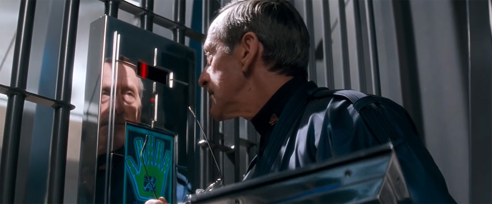Тем временем события ненадолго перемещаются в тюрьму, где мы видим современные системы безопасности с доступом только посредством дактилоскопического сканирования.