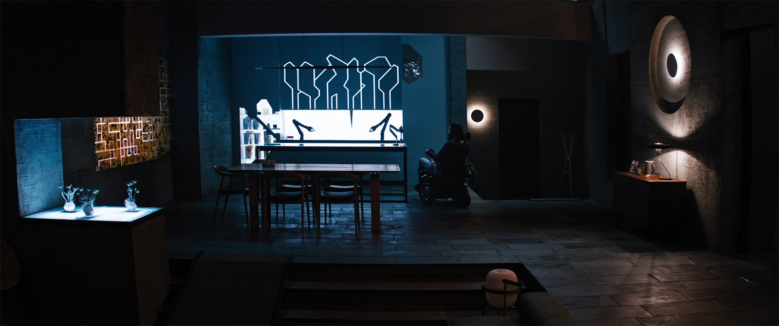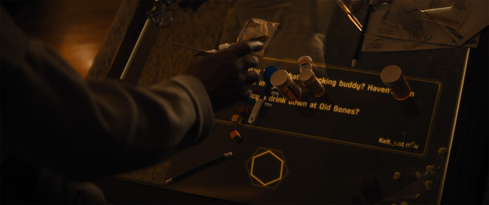 Сам дом напичкан технологиями. Умный свет, ассистент, который напоминает о покупках, оценивая данные о продуктах в холодильнике, стол со встроенным экраном. Последнее — это, кстати, какое-то неотъемлемое устройство жизненного процесса всех обитателей данного мира будущего, поскольку встречается и в обстановке домов состоятельных господ, и в жилище маргиналов, не заботящихся об уюте и комфорте.