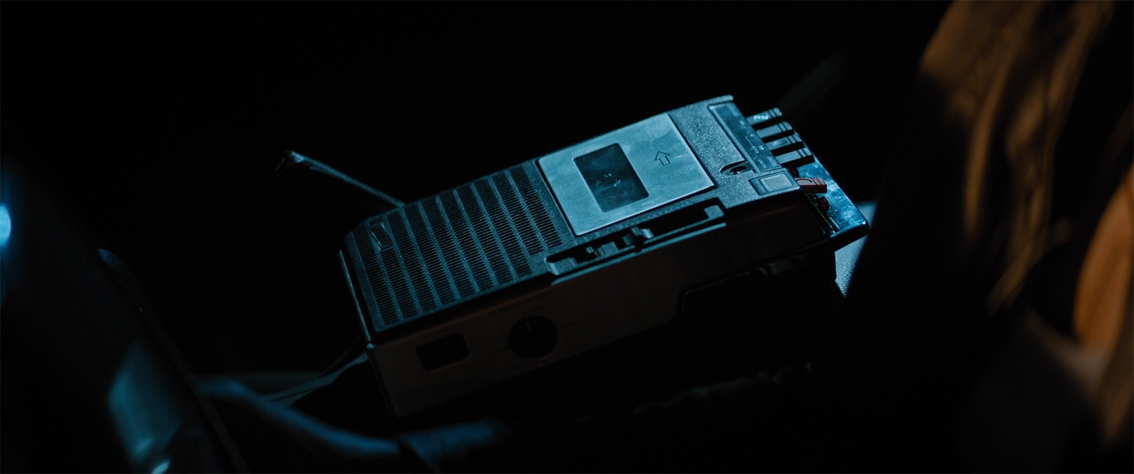 Но мир, как и во всех тех фильмах про будущее, что мы обозревали здесь, приютил не только передовые технологии. Например, детектив, которая расследует дело Грея, подсовывает ему жучок, запись с которого проводится на обычный диктофон.