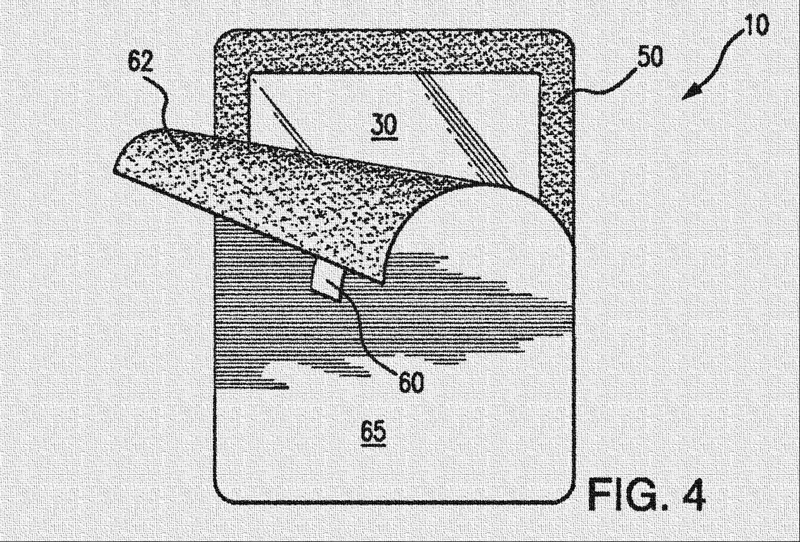 - упомянутый прозрачный материал выполнен многослойным, при этом между каждым из слоев и на внутренней поверхности самого первого слоя прозрачного материала находится слой клея, а каждый из слоев прозрачного материала выполнен с возможностью снятия с расположенного под ним слоя.