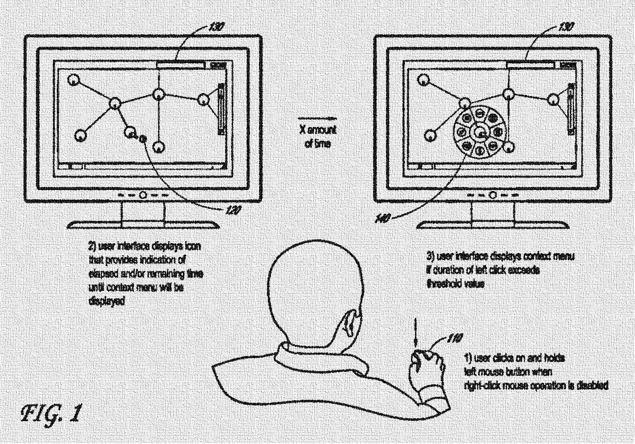 Начать следует с обычного контекстного меню, которое сегодня можно встретить буквально повсюду. Даже на главном экране вашего смартфона наверняка найдется приложение, долгое нажатие на иконке которого выдаст несколько наиболее вероятных для скоростного запуска функций. Новая вкладка в браузере, быстрое селфи, новый будильник или событие в календаре. В патентных изображениях контекстное меню выглядит вот так: