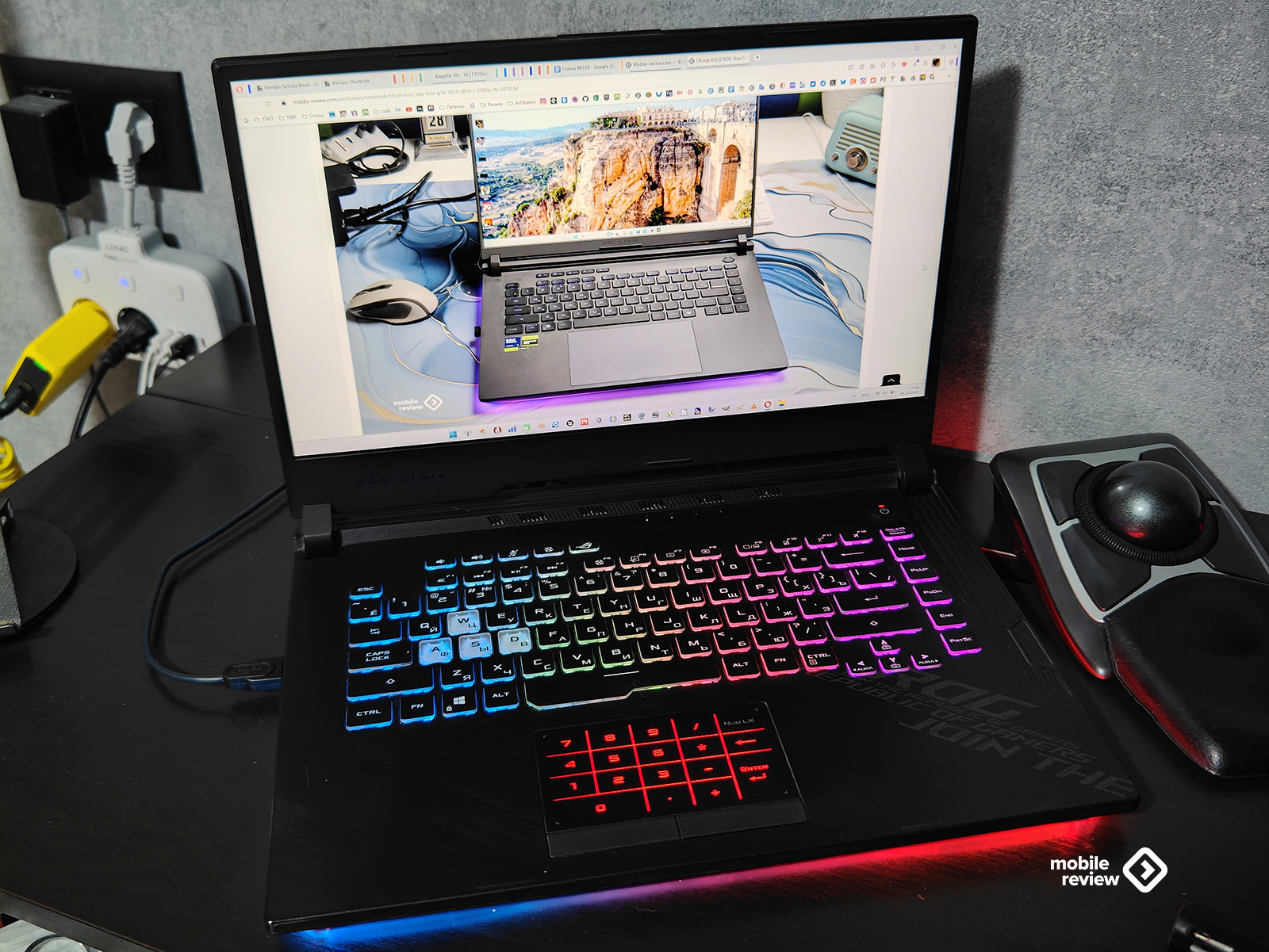В обзоре Роман посетовал на то, что в ASUS ROG Strix G16 нет выделенного Numpad. Я в свое время, когда присматривал себе ноутбук, отметил, что в ASUS, в общем-то, поступили правильно. У моего ноутбука диагональ 15 дюймов, и поэтому уместить в корпусе полноценную клавиатуру довольно проблематично. Инженеры придумали элегантное решение совместить тачпад с Numpad, который активировался бы в моменты необходимости. Однако всего функционала обычных клавиш он не получил. Набирать, например, Alt-коды с его помощью не получится. Хотя мне и попадались умельцы на Reddit, которые сумели это настроить. В итоге первое время для «кавычек-елочек» и длинного тире у меня была открыта таблица со специальными символами. Позднее типографская раскладка Бирмана решила вопрос. Сегодня же есть еще более удобный способ. Расскажу вам о нем позднее в контексте другого материала. Так вот. Numpad интегрированный в тачпад оказался не совсем уж бесполезным. В Blender он работает и мне показался даже удобным. Однако в целом эргономика ноутбука в одном моменте подвела. В углах. Да-да. Из-за того, что клавиатура сдвинута на размер того самого тачпада вверх от нижнего края, руки ложатся точнехонько на углы и при долгой печати они неплохо так вдавливаются, оставляя следы. Кроме того, браслет часов на корпусе оставляет потертости: